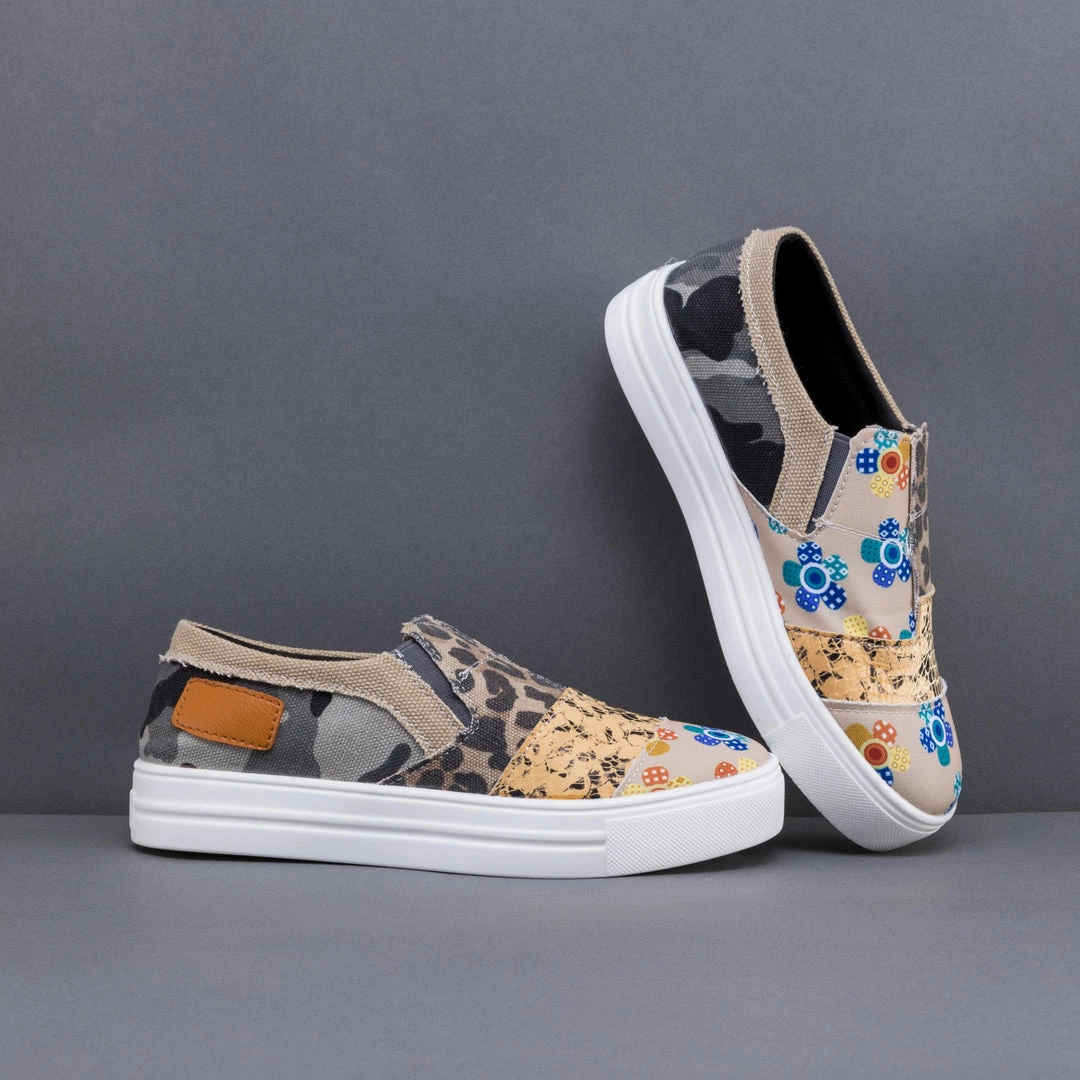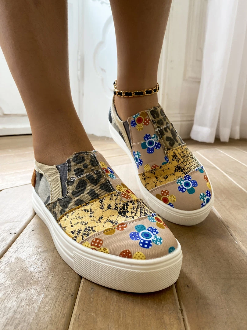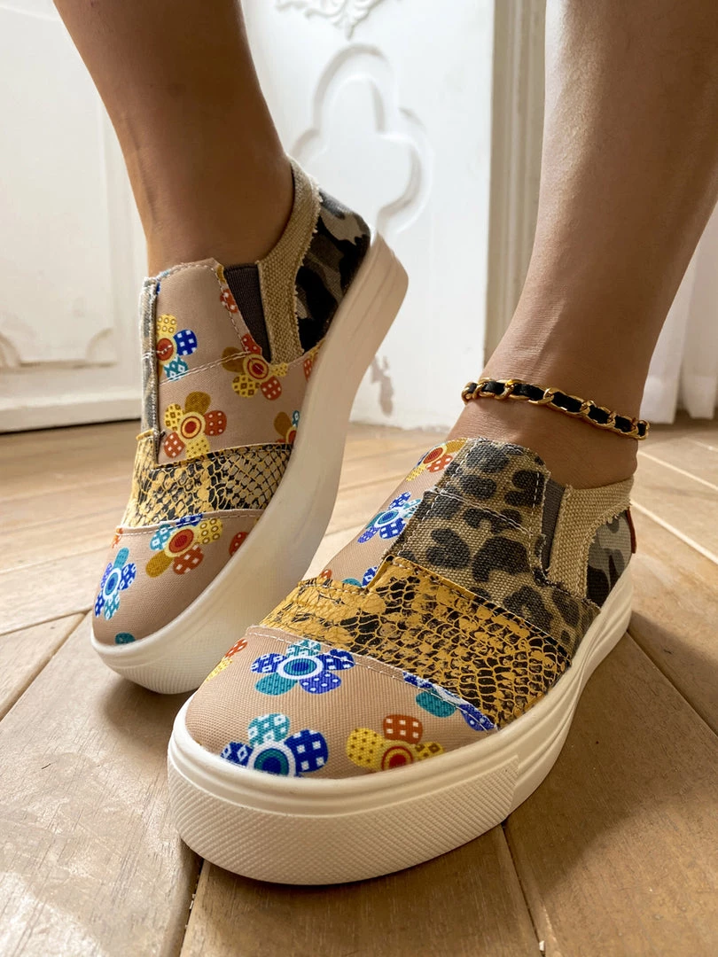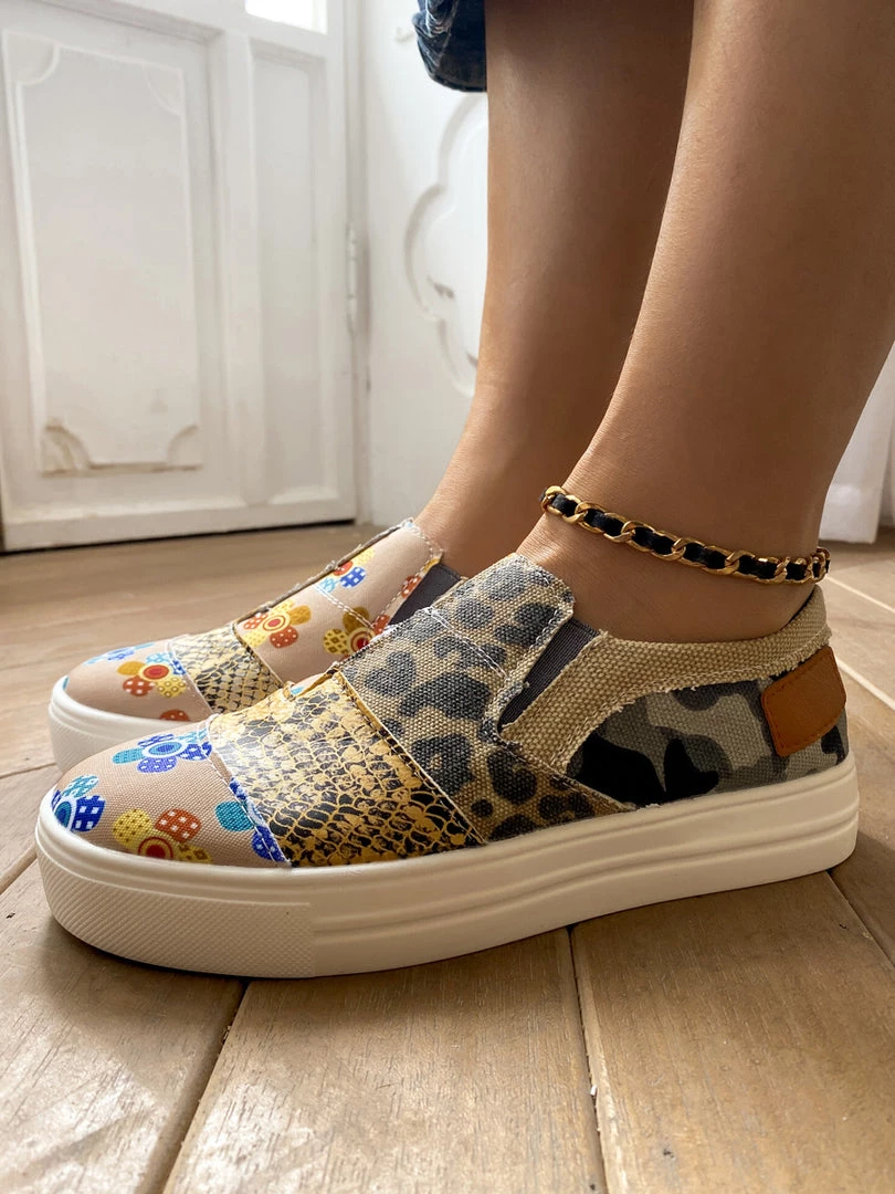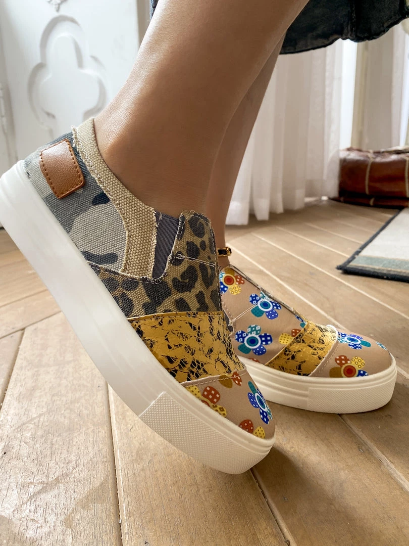 With a canvas-inspired design and contrast print detail, this slip-on sneaker provides chic on trends style to your casual looks with our tops or dresses.