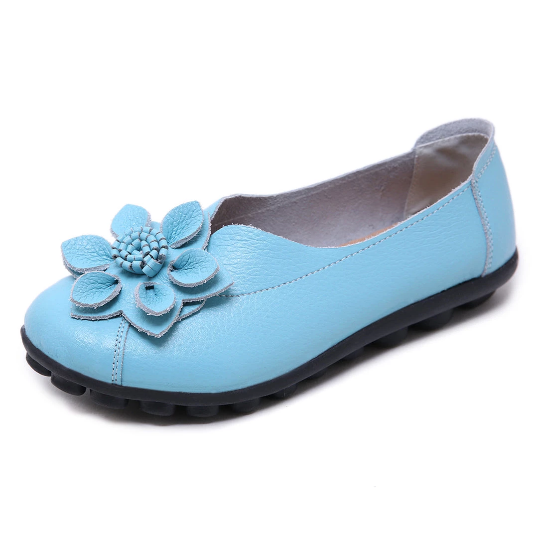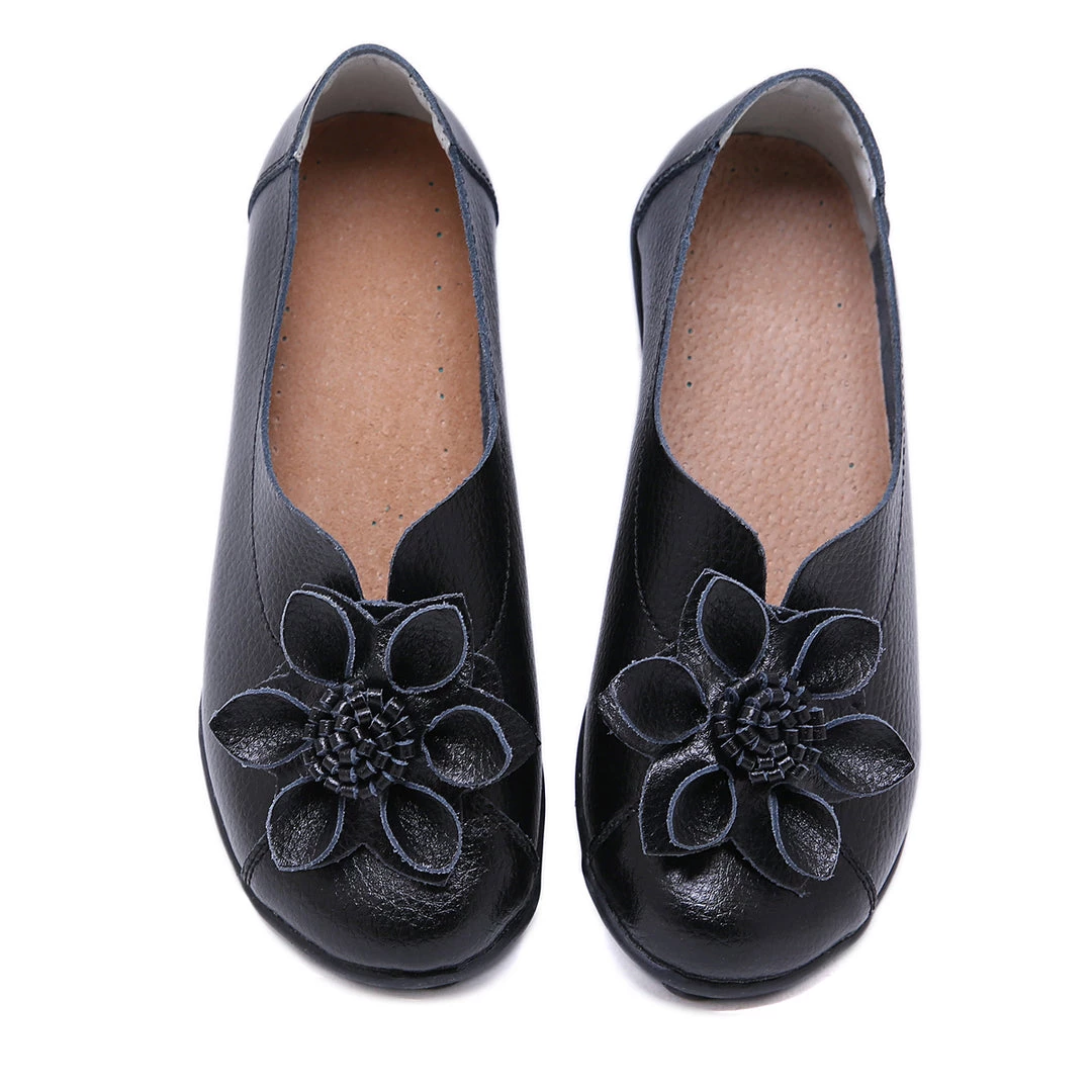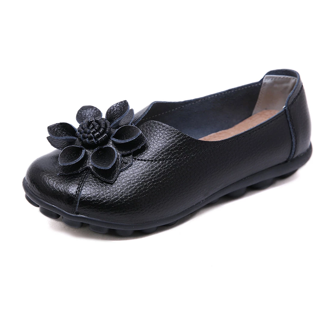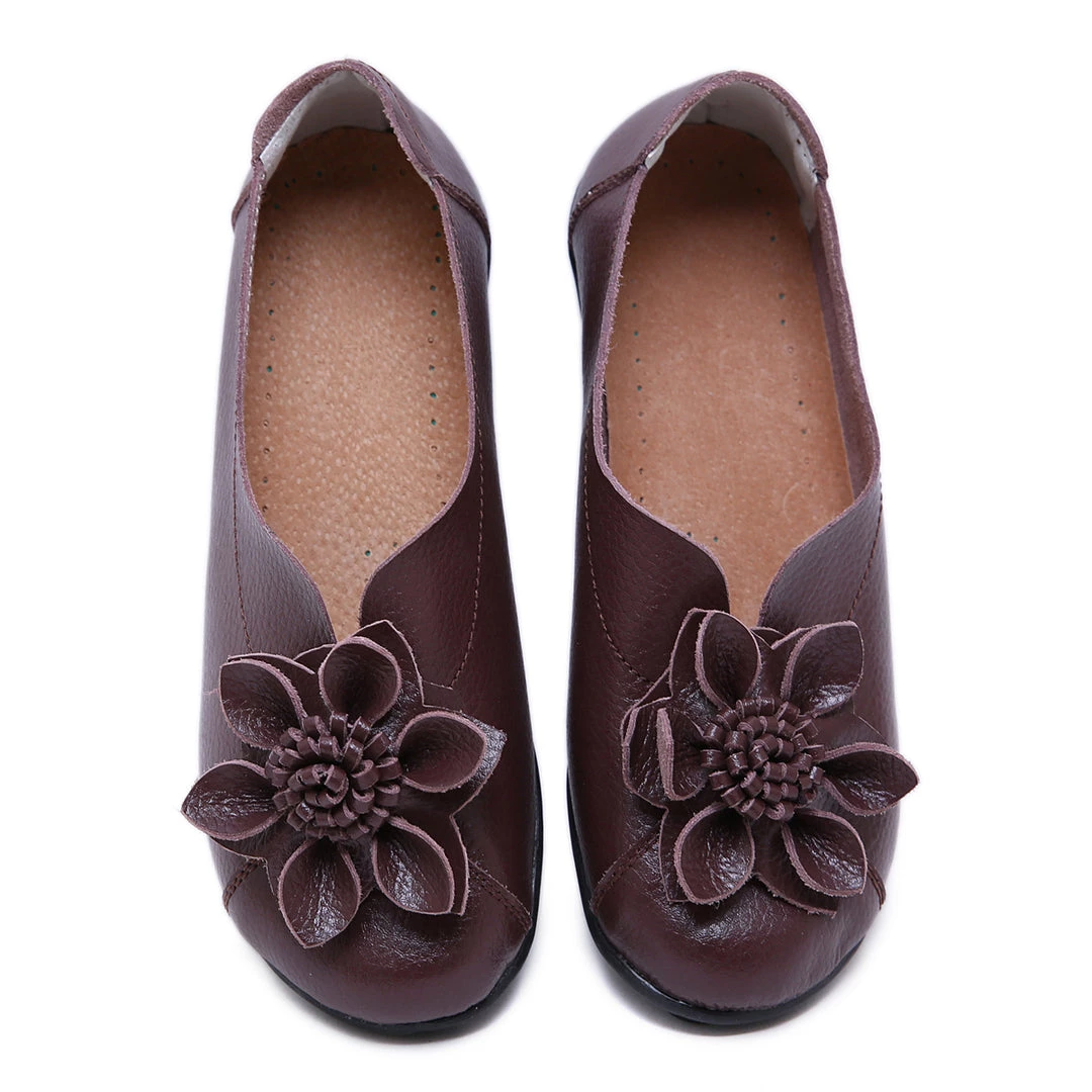 Refresh your steps with the sweet floral accents adorning the toes of these supportive flats. The textured sole provides a non slip grip, and the supple leather conforms to the shape of your foot.