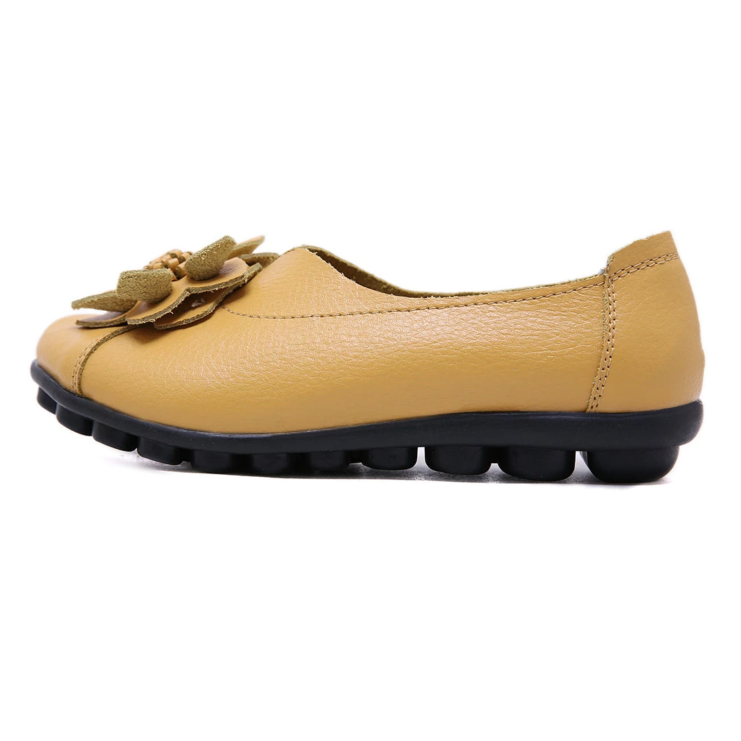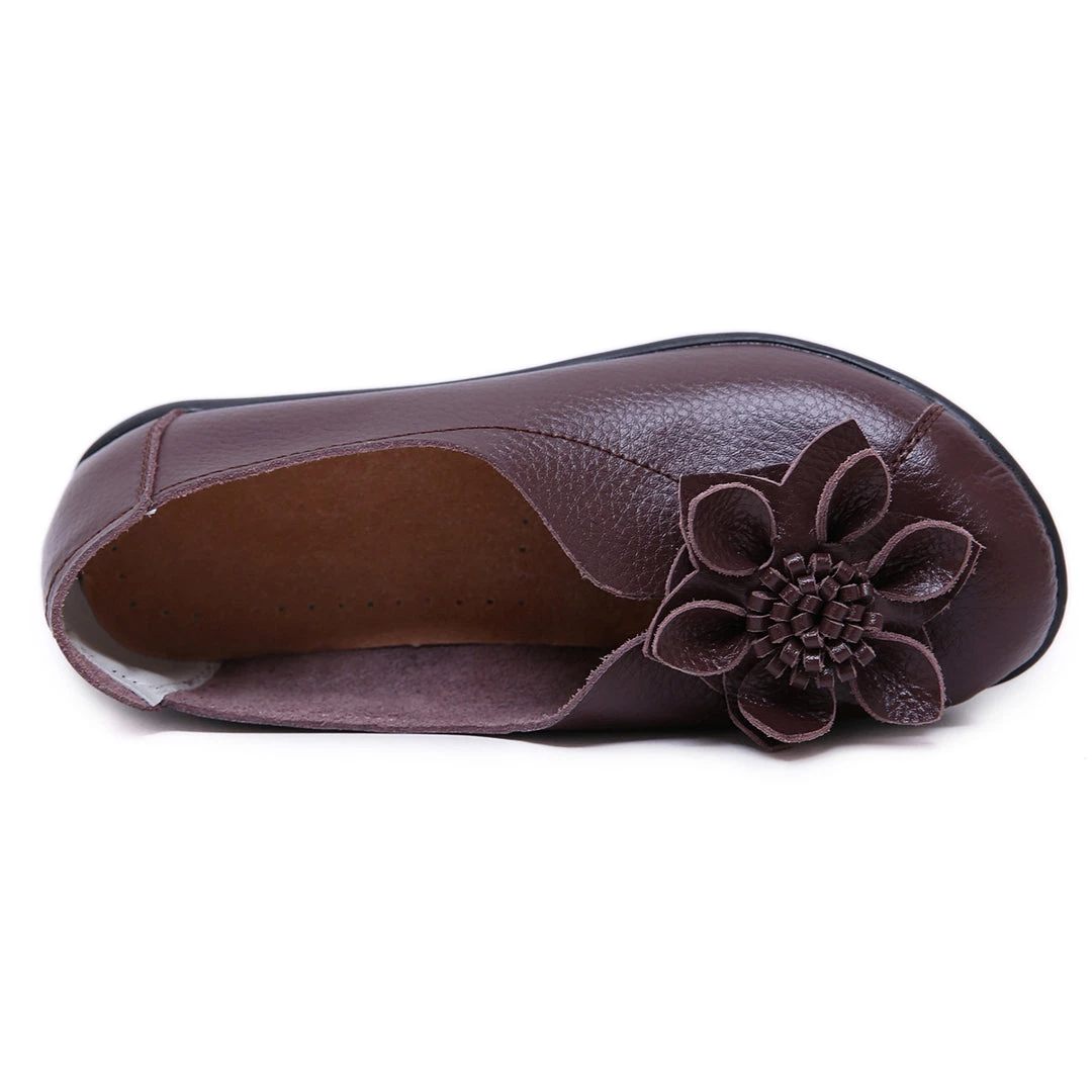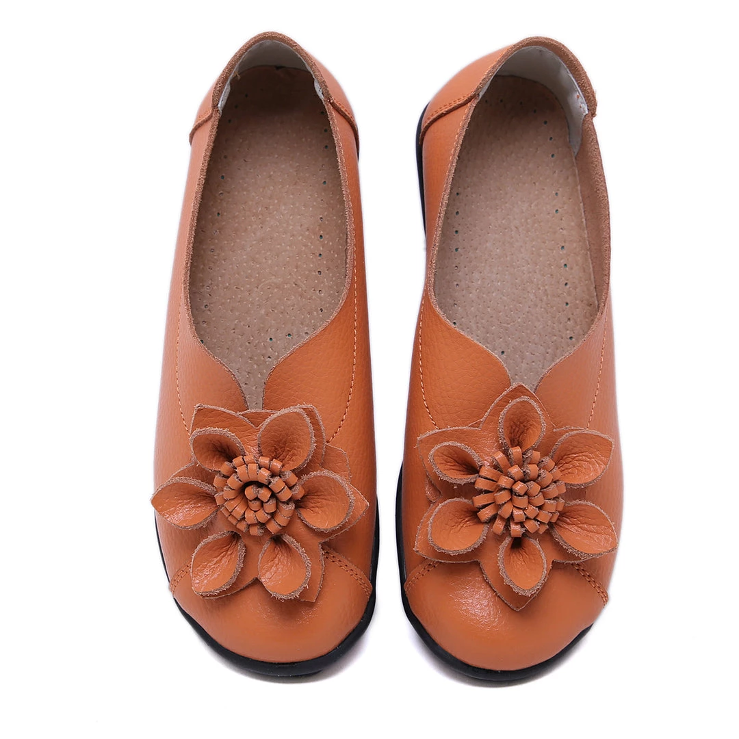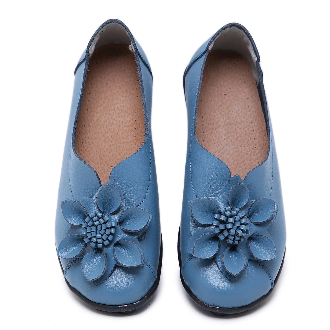 Refresh your steps with the sweet floral accents adorning the toes of these supportive flats. The textured sole provides a non slip grip, and the supple leather conforms to the shape of your foot.