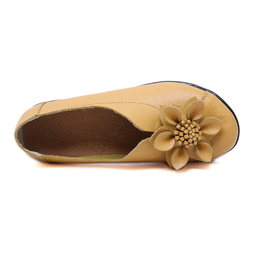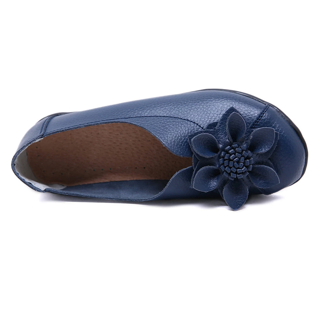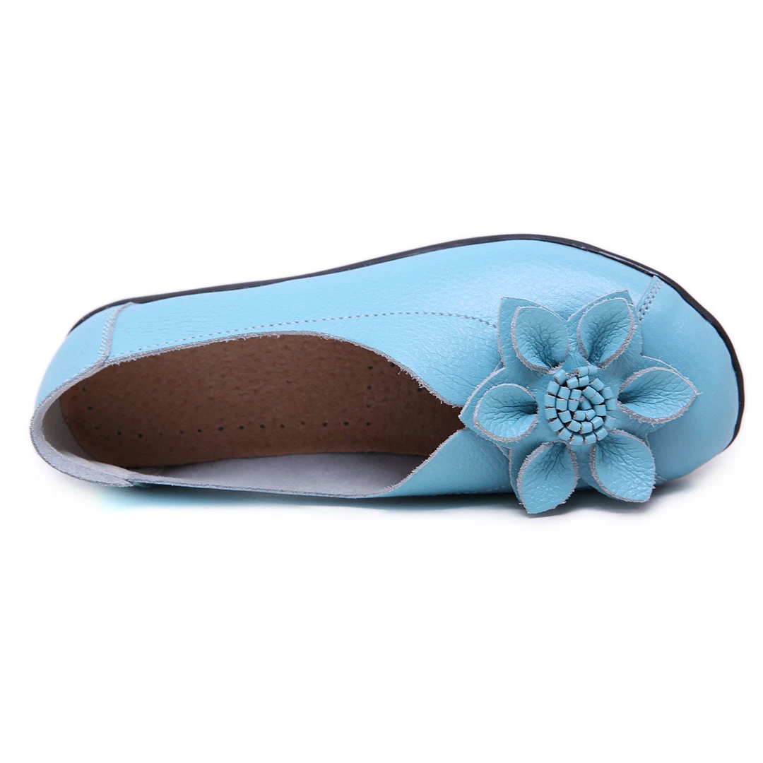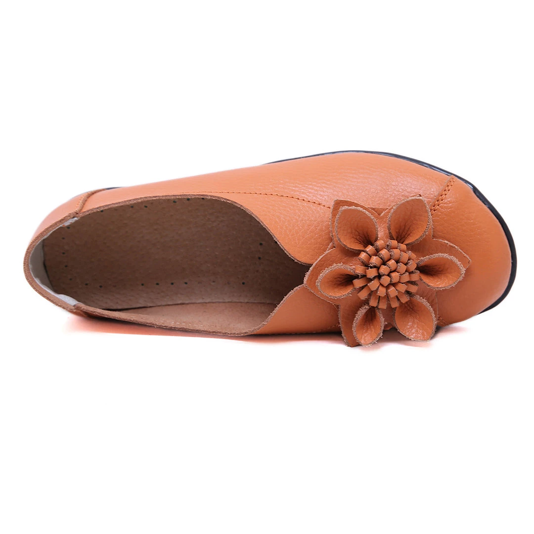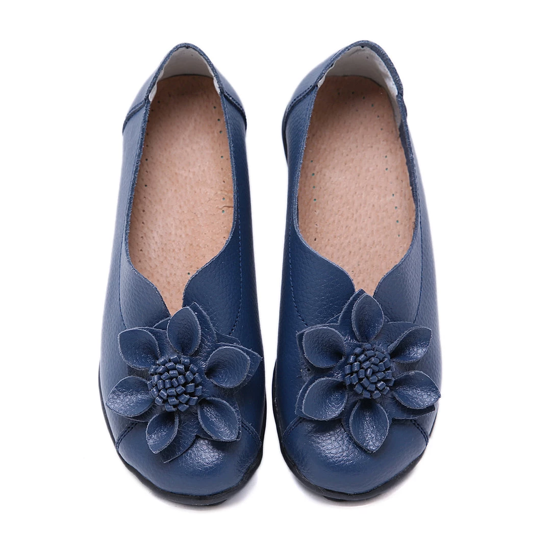 Refresh your steps with the sweet floral accents adorning the toes of these supportive flats. The textured sole provides a non slip grip, and the supple leather conforms to the shape of your foot.