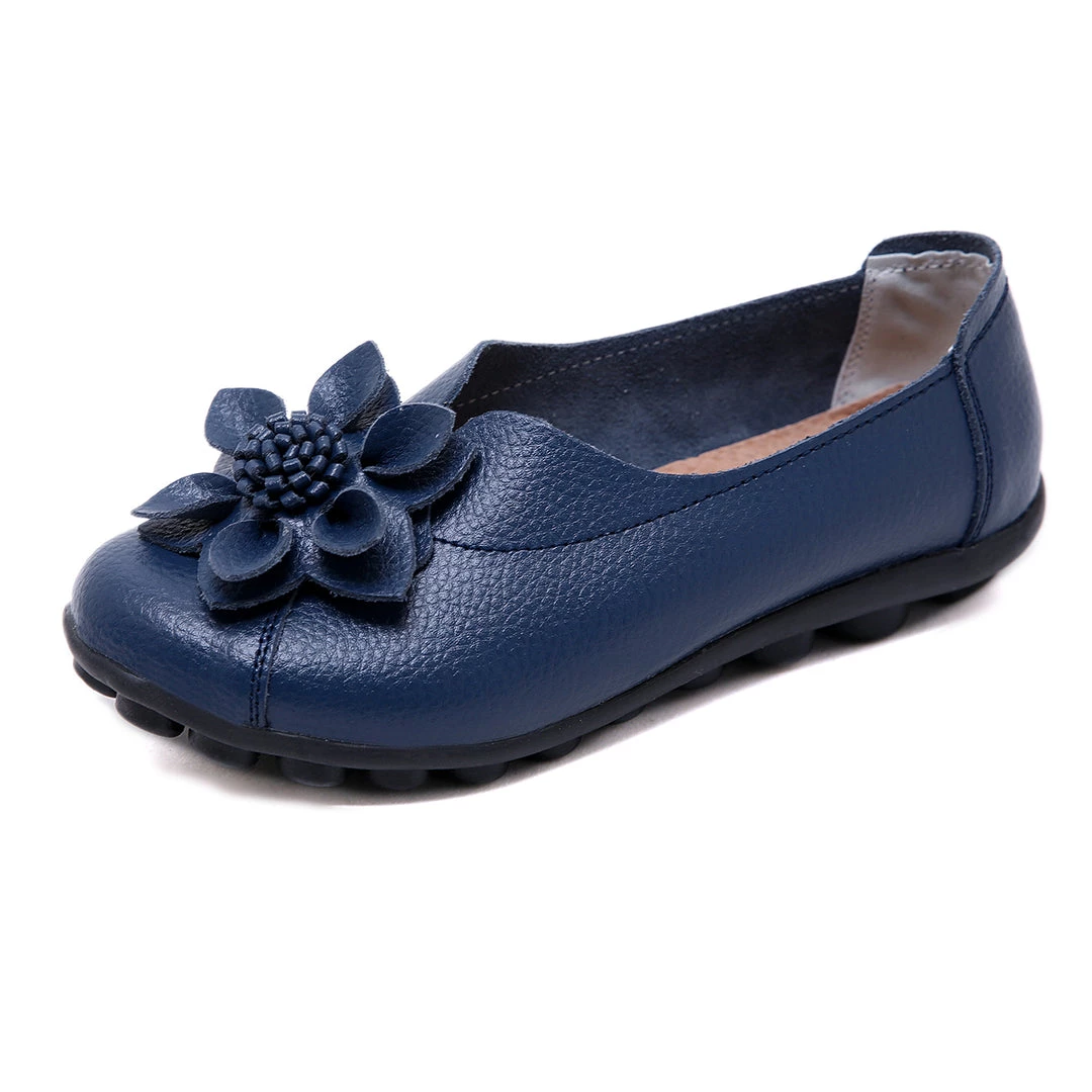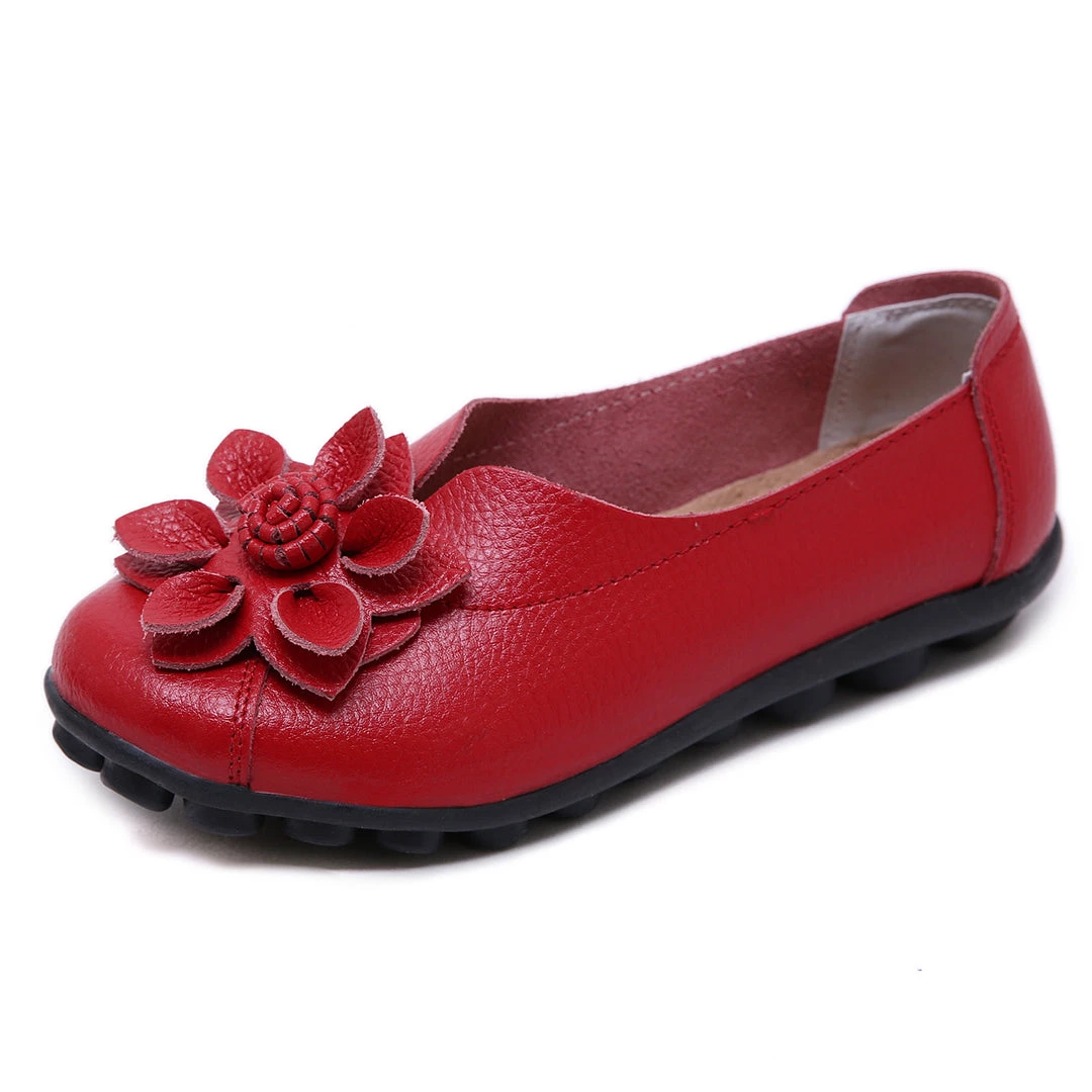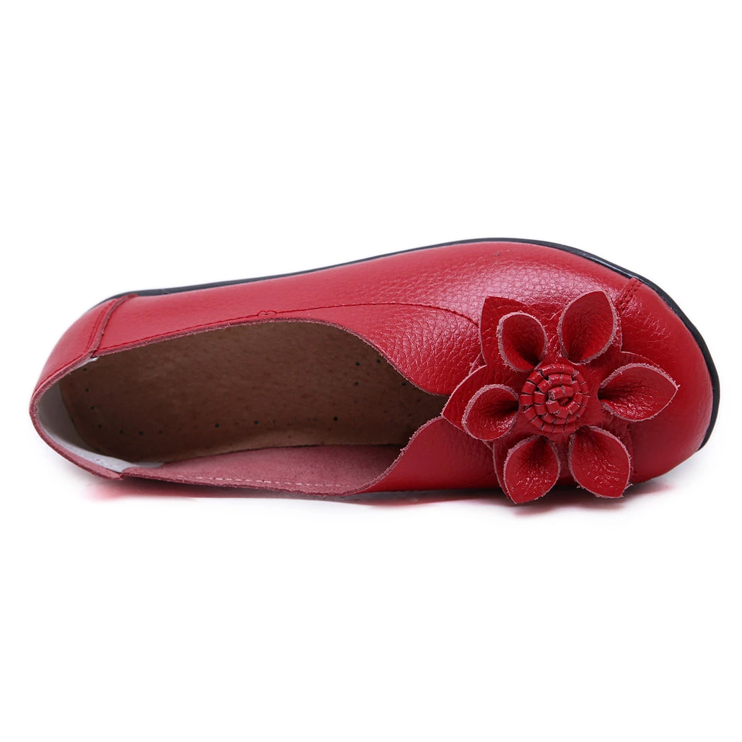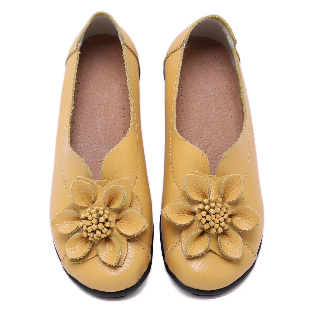 Refresh your steps with the sweet floral accents adorning the toes of these supportive flats. The textured sole provides a non slip grip, and the supple leather conforms to the shape of your foot.