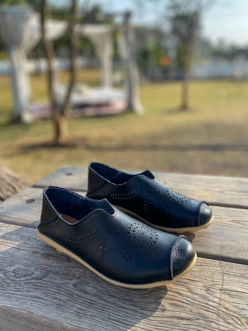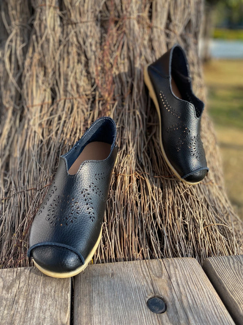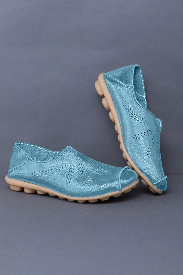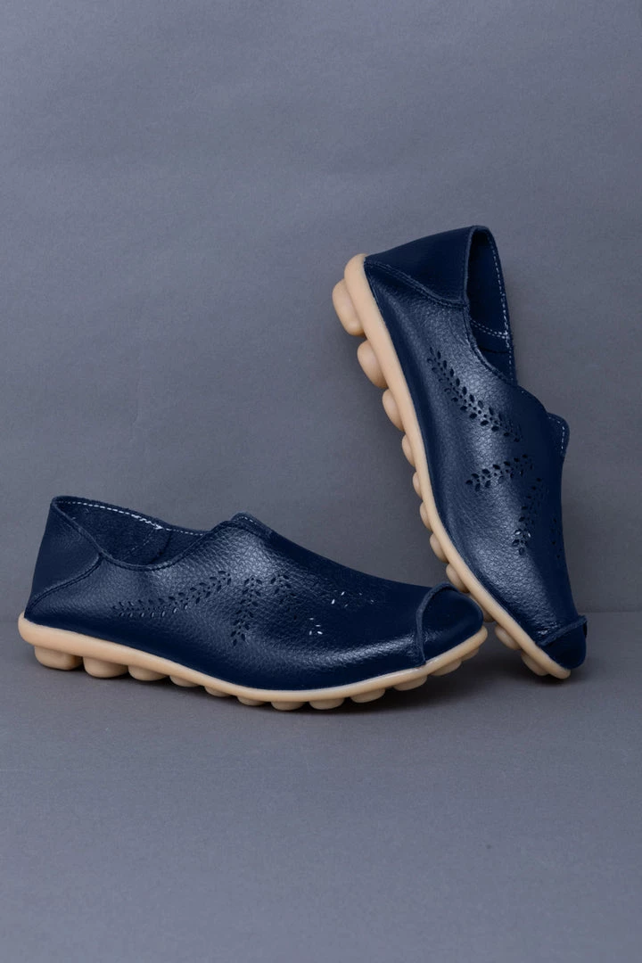 A laser cut and visible seams add visual texture to this comfortable slip-on loafer. Crafted from quality leather, this pair features a textured sole that cushions each step.