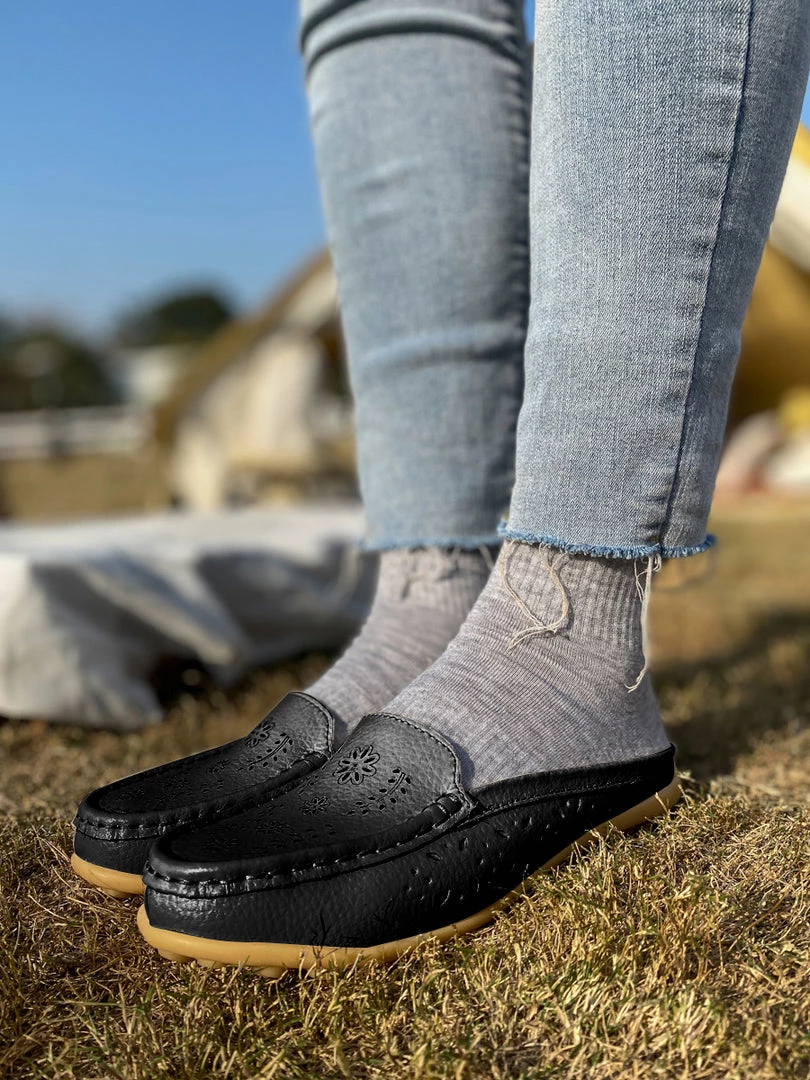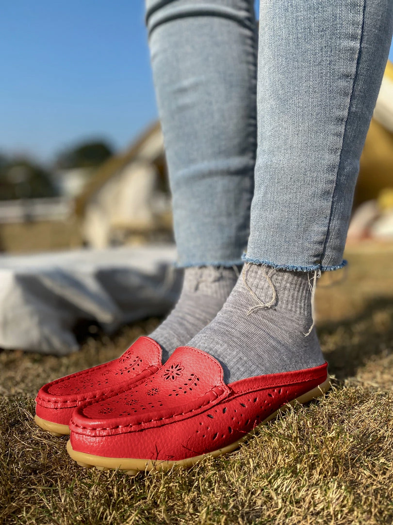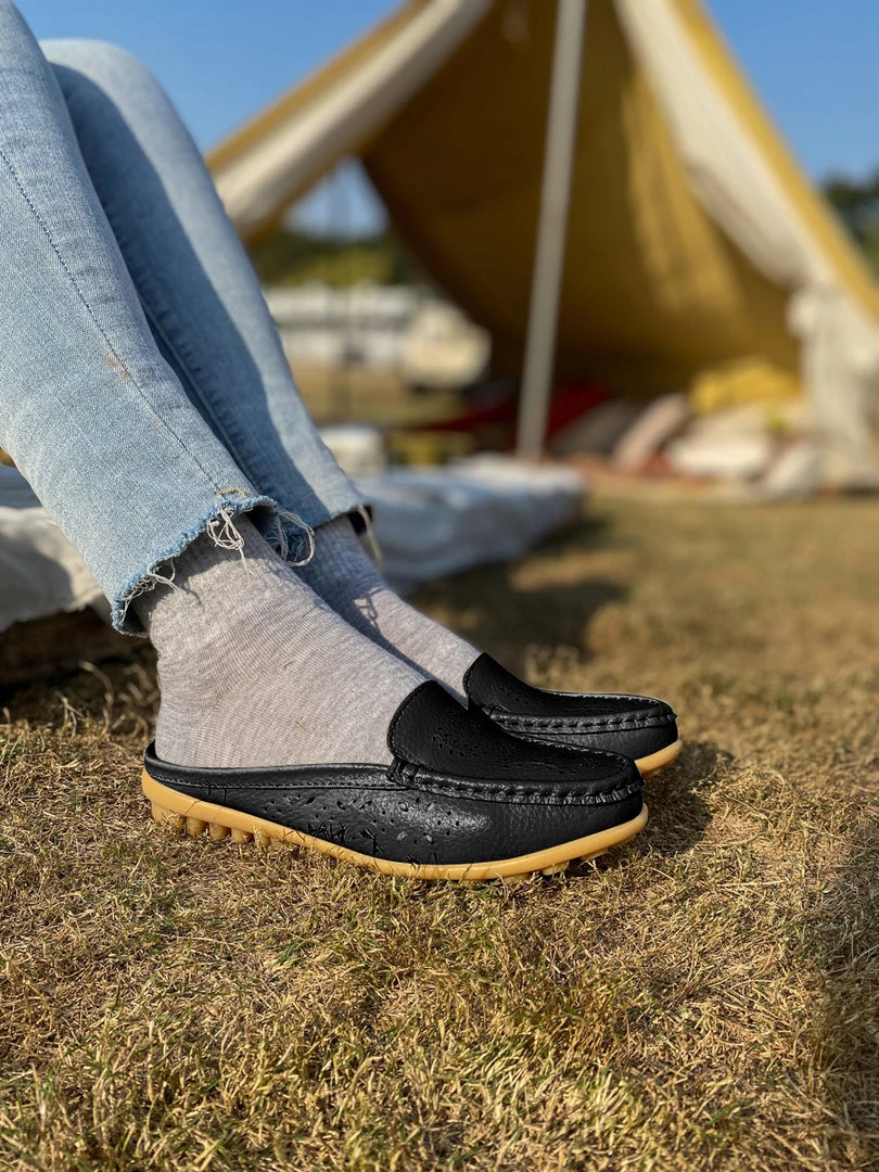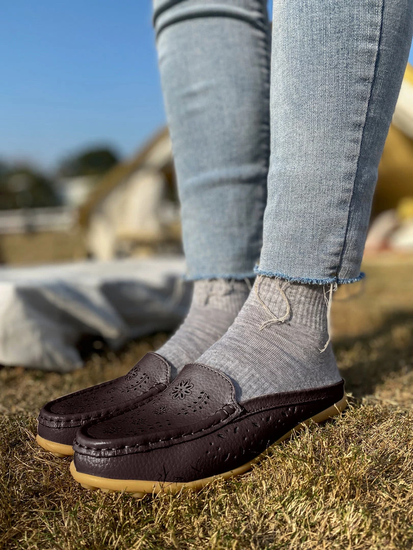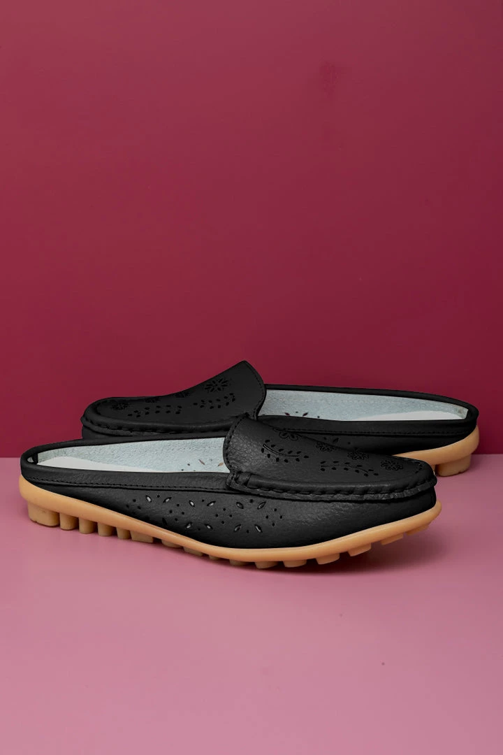 A loafer-inspired design makes these leather mules a casually chic pick. Designed with a sturdy rubber sole, you’ll be stepping securely.