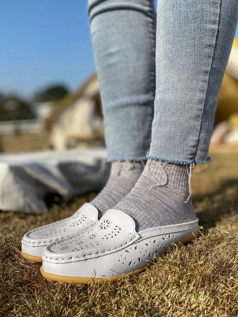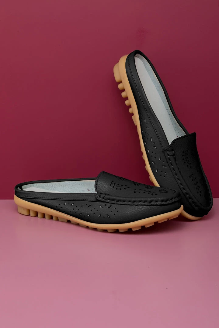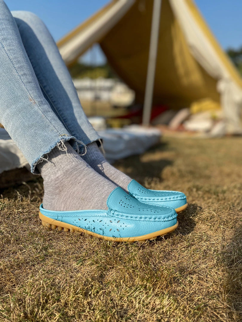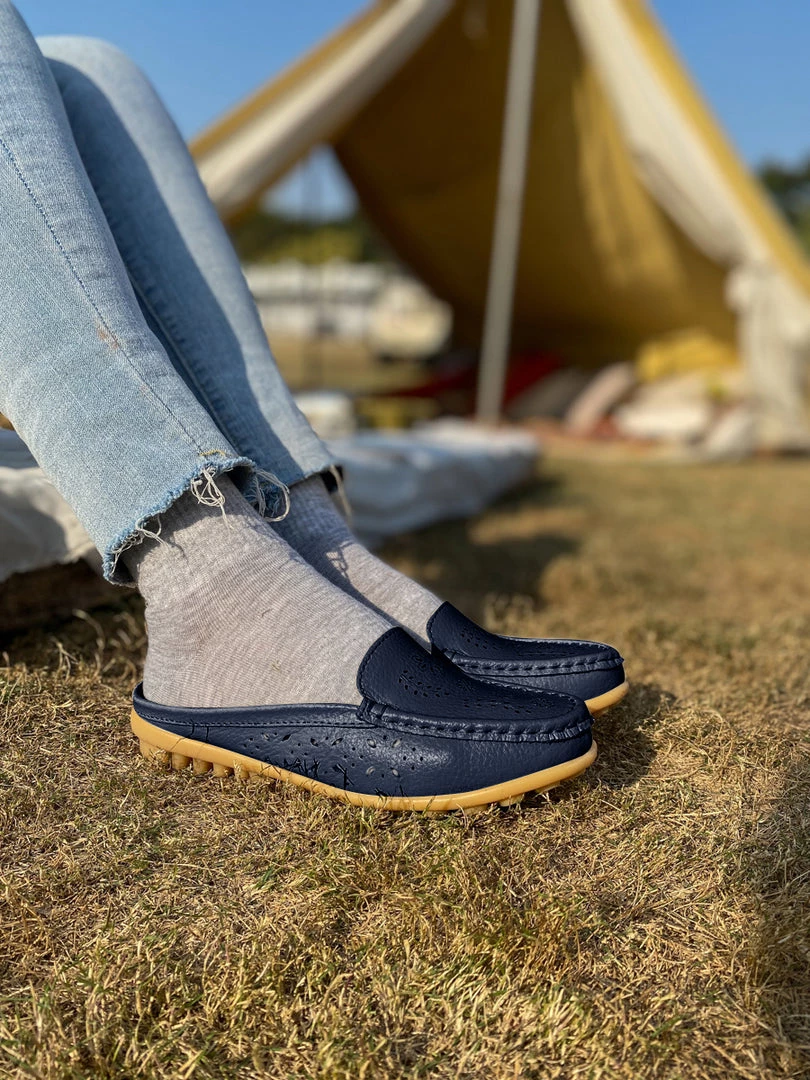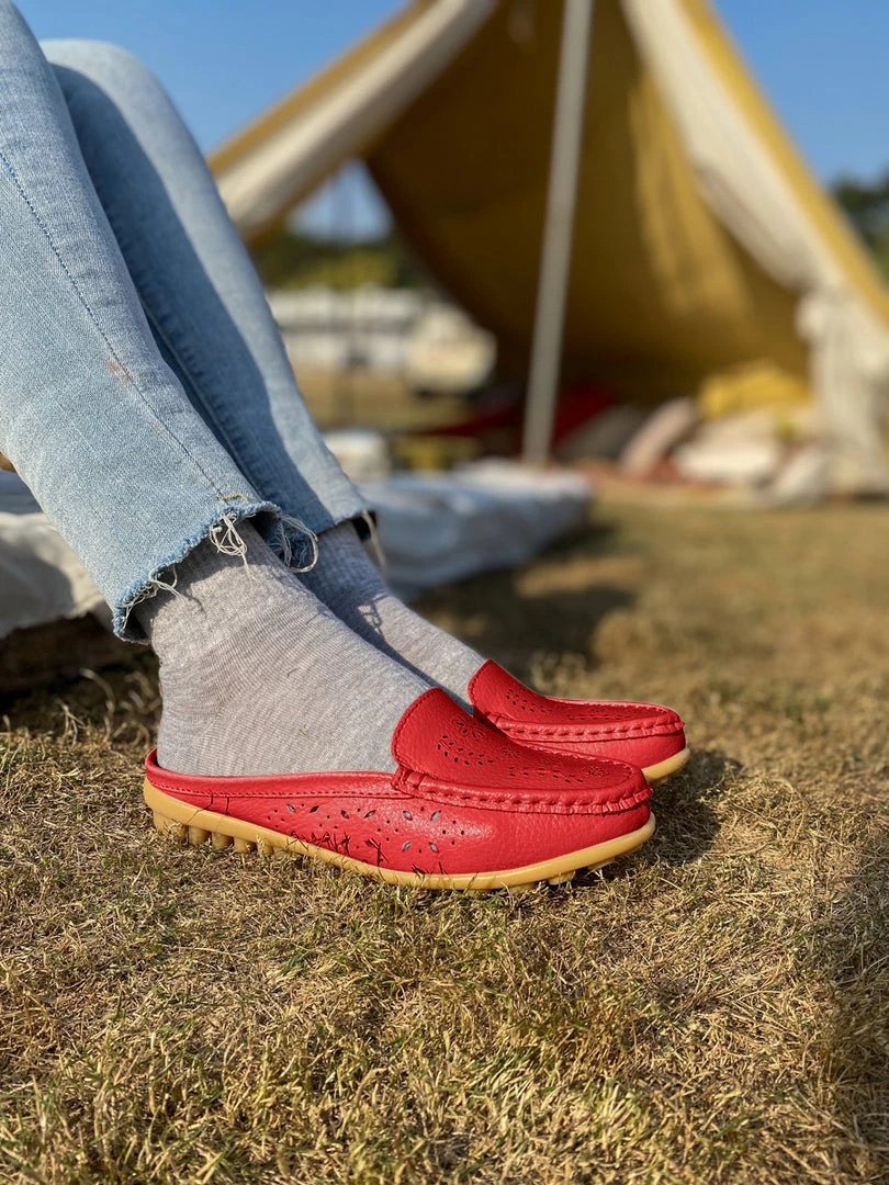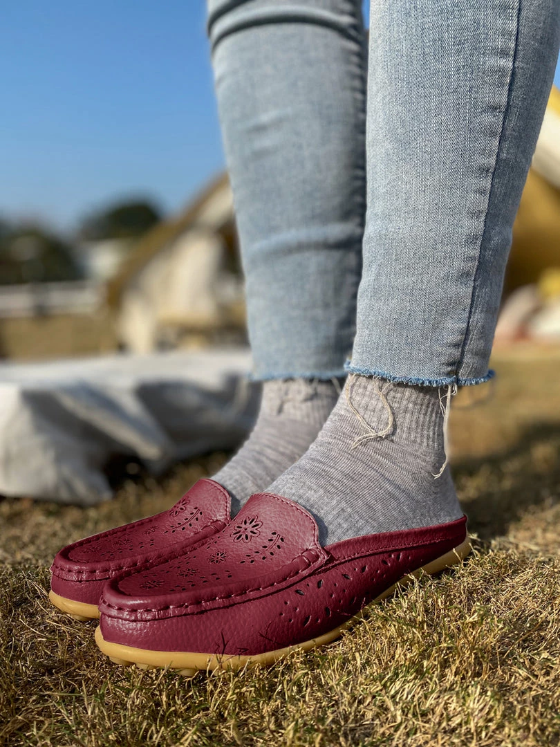 A loafer-inspired design makes these leather mules a casually chic pick. Designed with a sturdy rubber sole, you’ll be stepping securely.