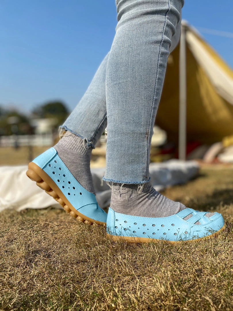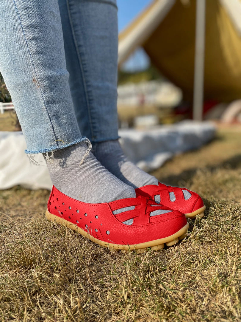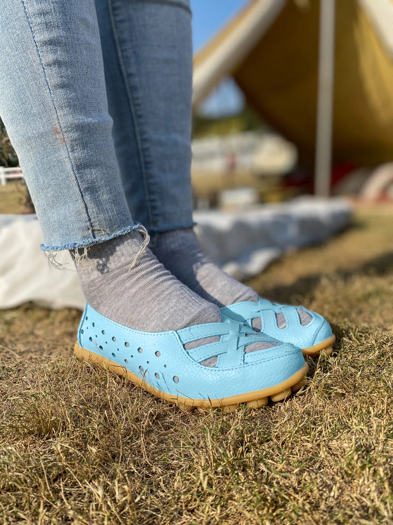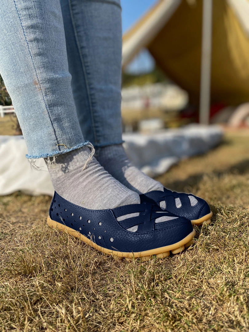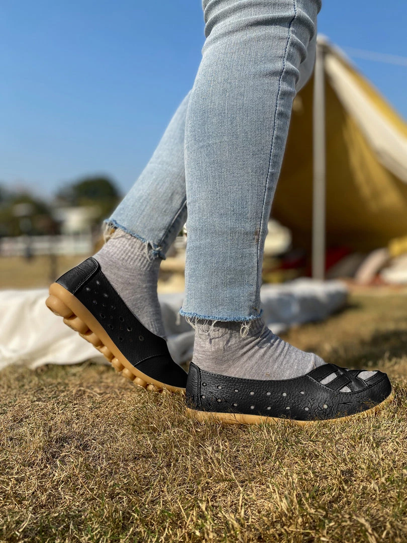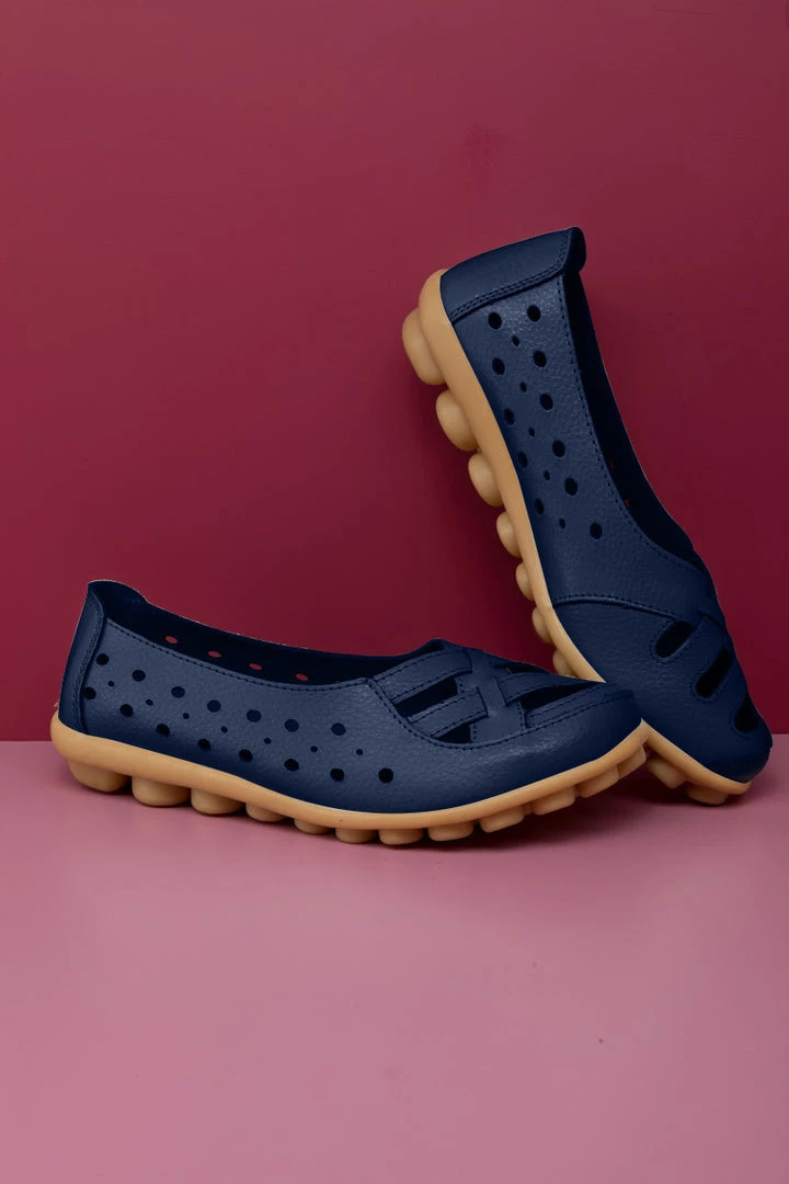 Refresh your steps with this accents adorning the toes of these supportive flats. The textured sole provides a non-slip grip, and the supple leather conforms to the shape of your foot.
