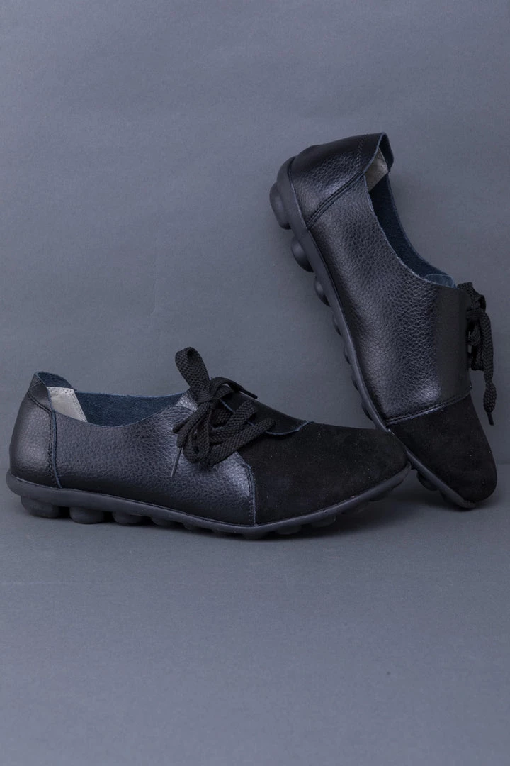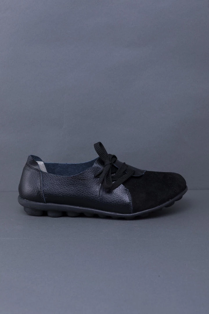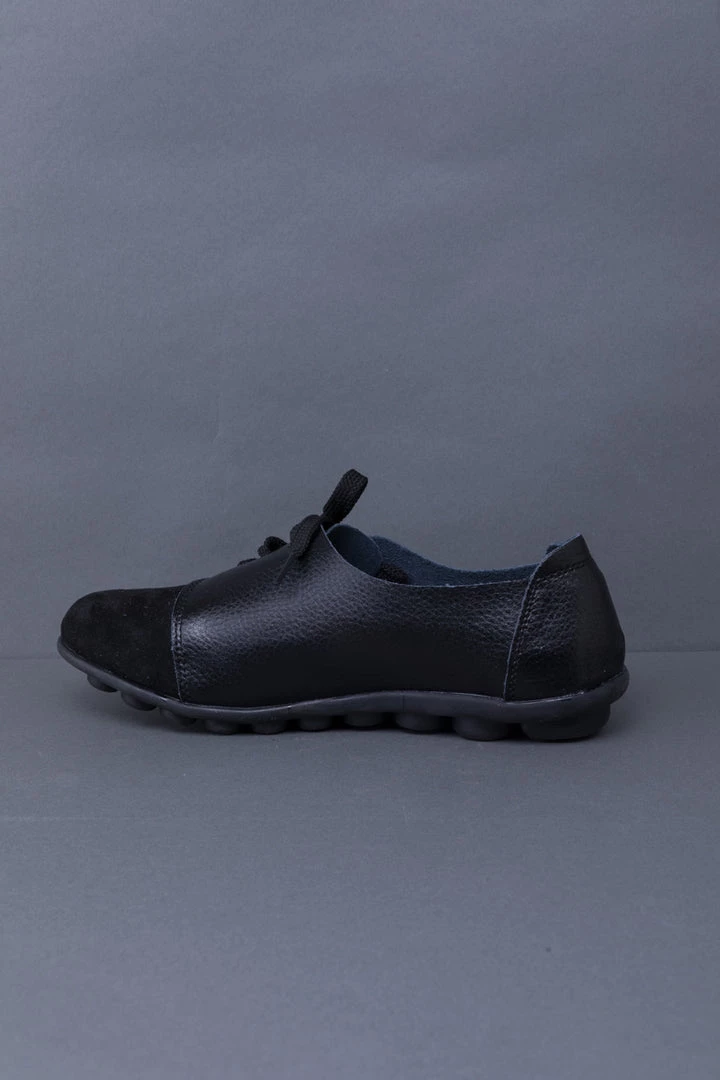 Slip into supple leather and stride with ease in this versatile loafer that features adjustable laces, contrasting leather textures and a slip-resistant sole.