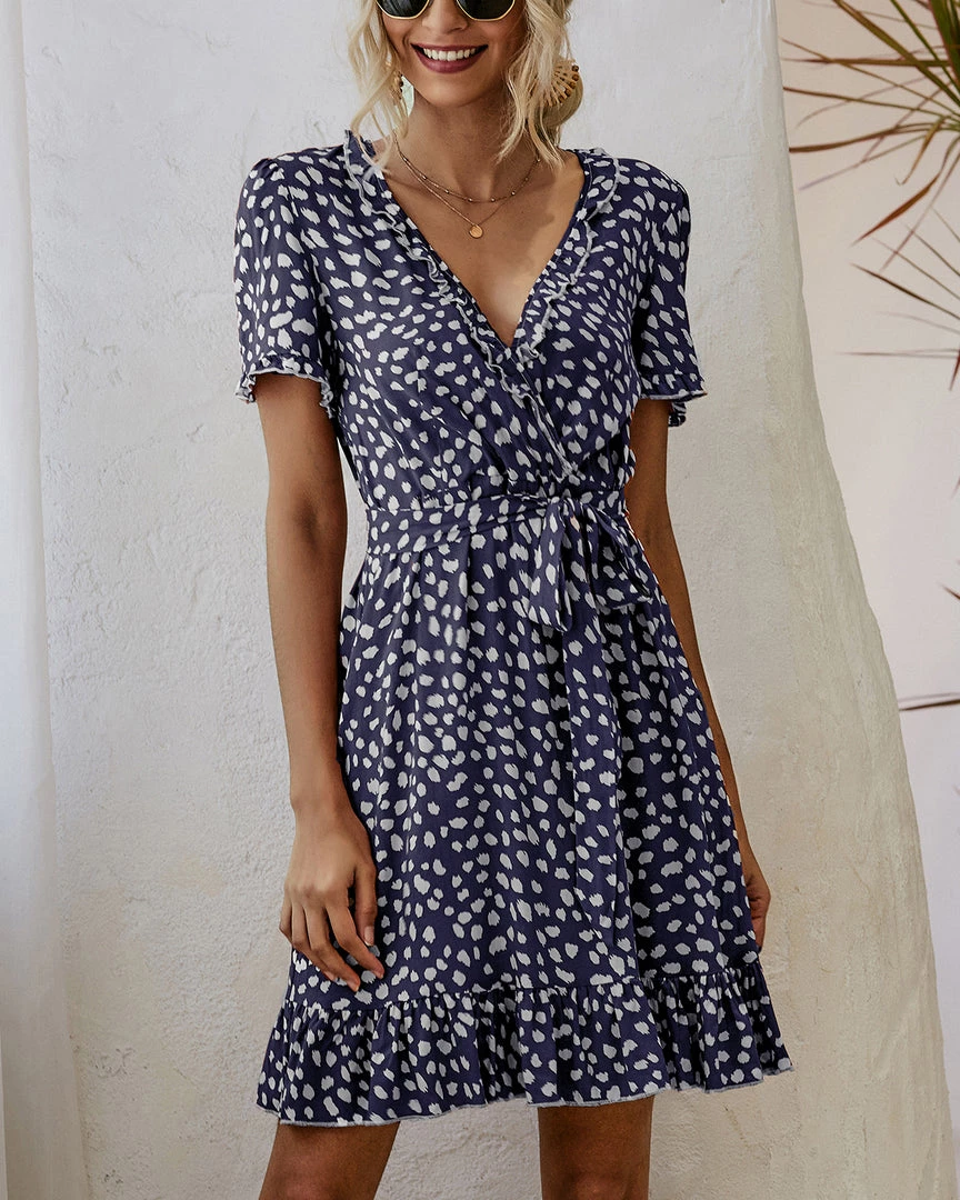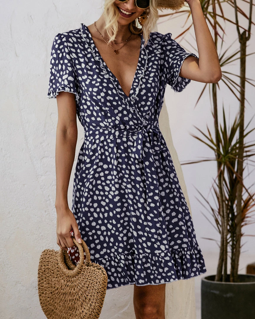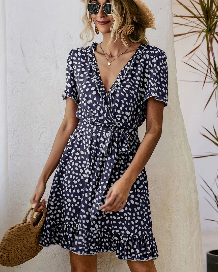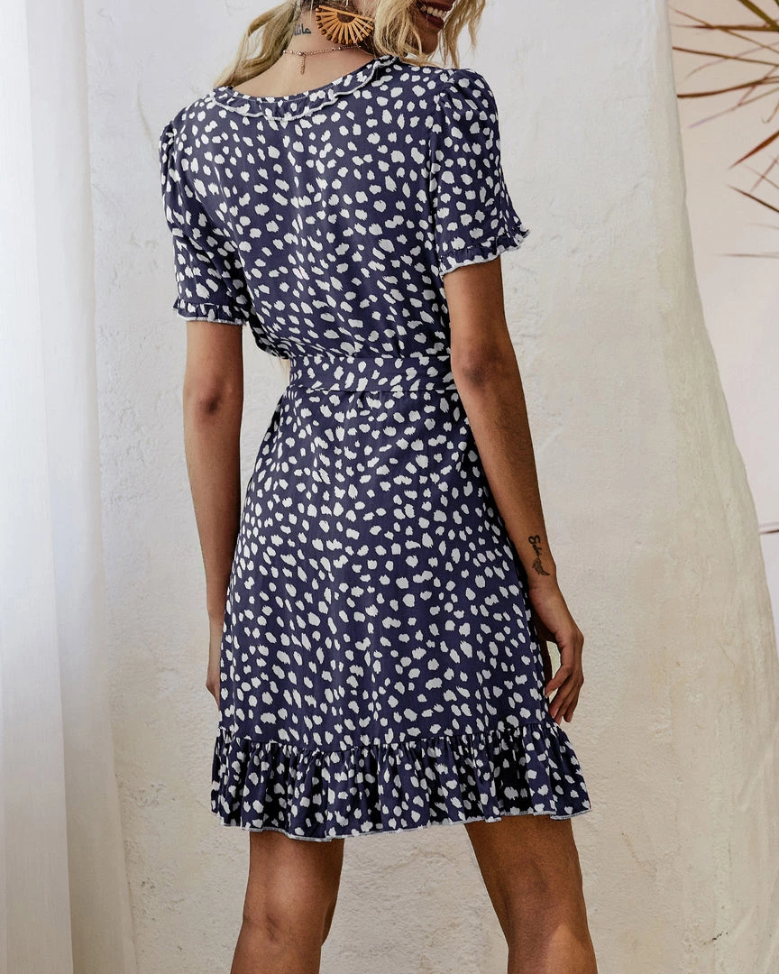 Enjoy the easygoing polish of this shift dress adorned with an abstract polka dot print and waist tiered design.