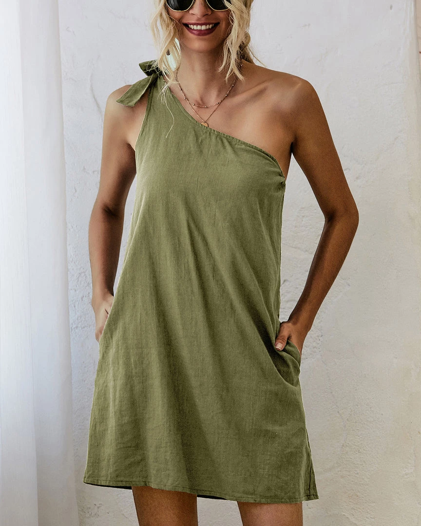 BBYS Asymmetric Pocket Shift Dress – Army Green New In Clothing