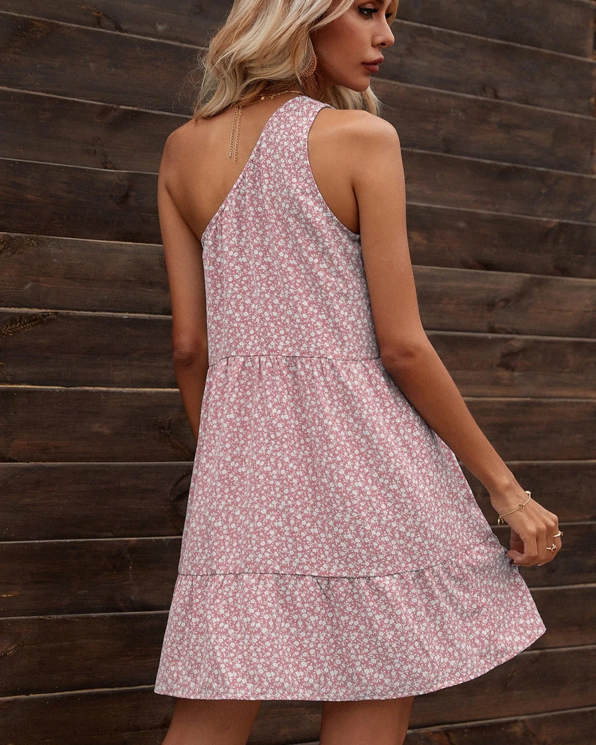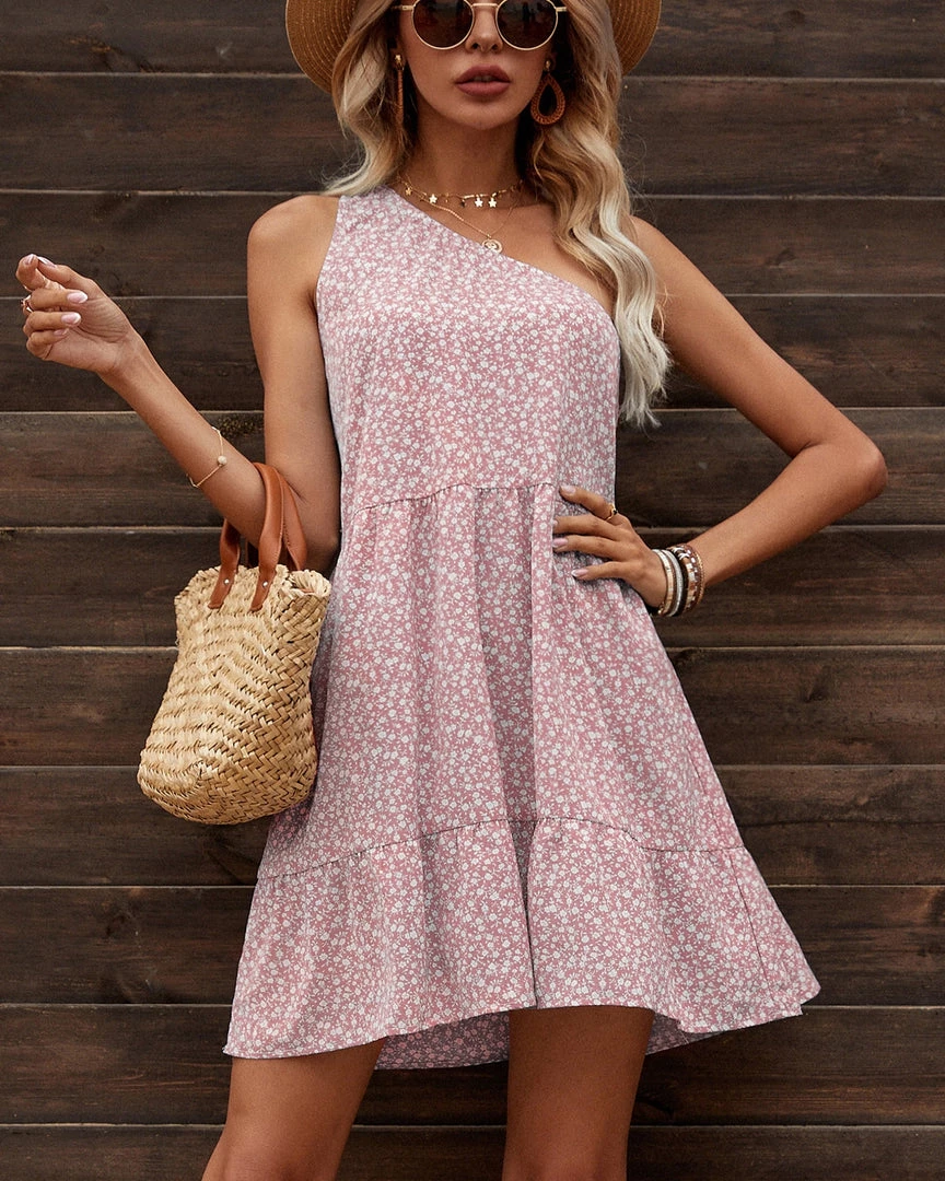 BBYS Floral One-Shoulder Casual Dress – Pink