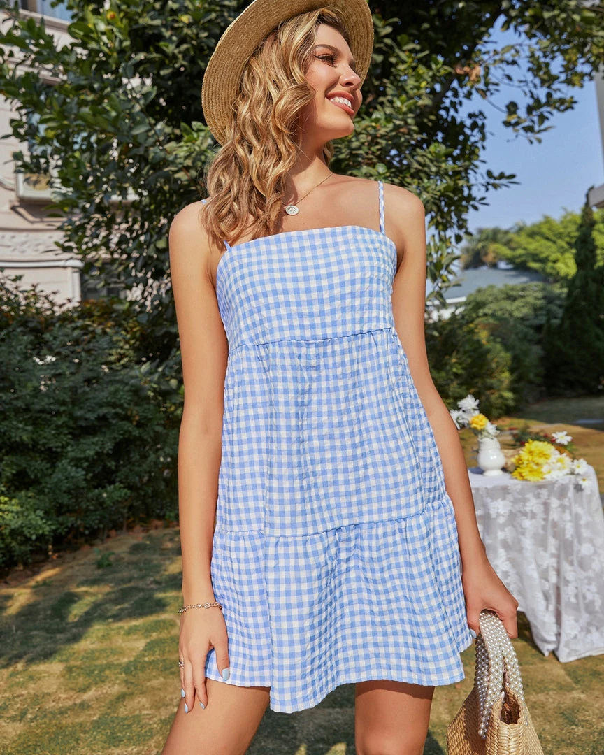 You’ll feel like flirting in this sleeveless dress that features a cotton blend soft fabric and a classic plaid print.