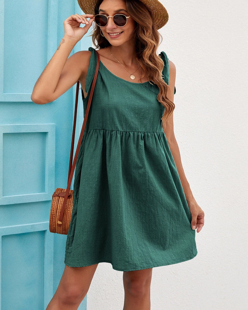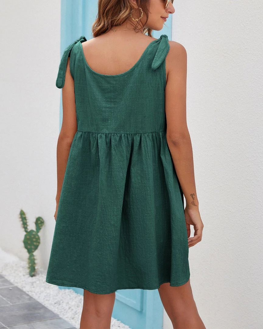 BBYS Tie-Bow Strap Side Pocket Linen Shift Dress – Green New In Clothing