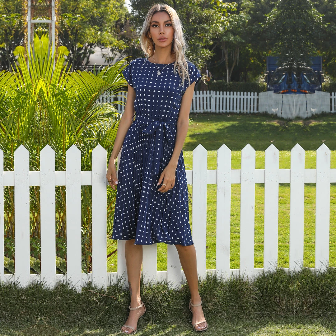 Our Given Spot Dress comes in a navy tone base, with a white tone spot print. This relaxed fit midi features an elastic waist and fabric waist tie to beautifully cinch in the figure. The butterfly short sleeves and relaxed fit make this ideal for maternity wear and provide ultimate comfort whilst looking your best.
