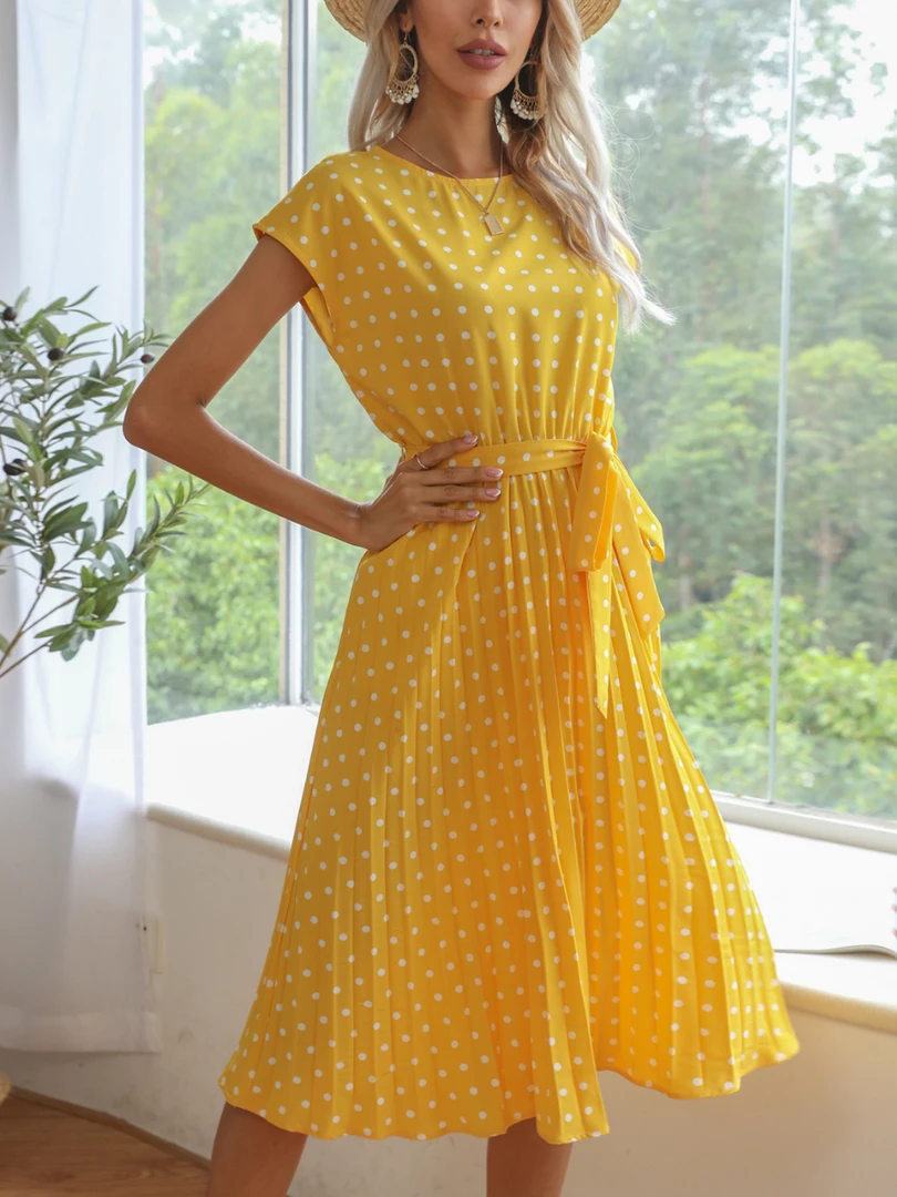 - Feature: Midi length. Relaxed fit. Elastic waist and fabric waist tie. Butterfly short sleeves. Lightweight.