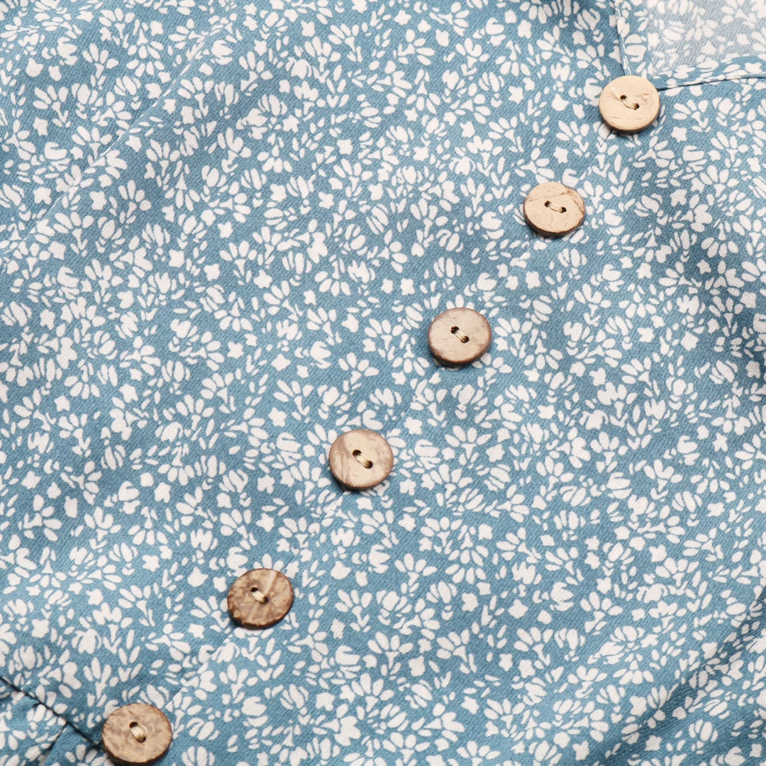 Enjoy the easygoing polish of this mini dress adorned with a blue floral print and front button design.