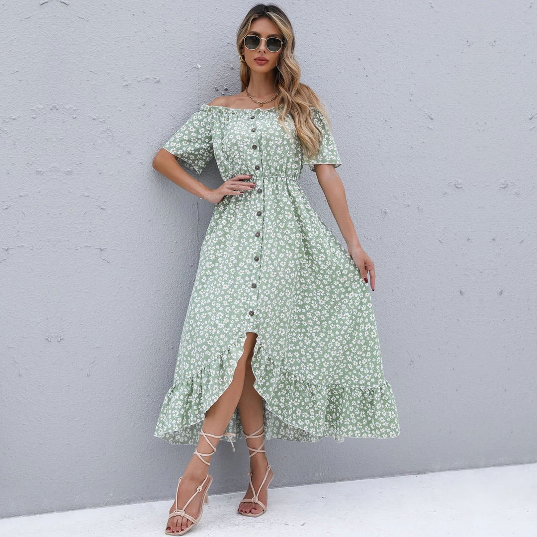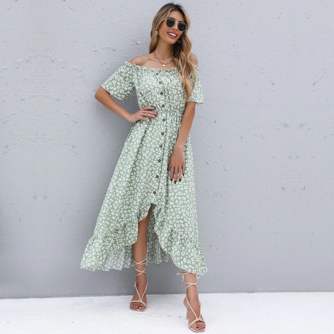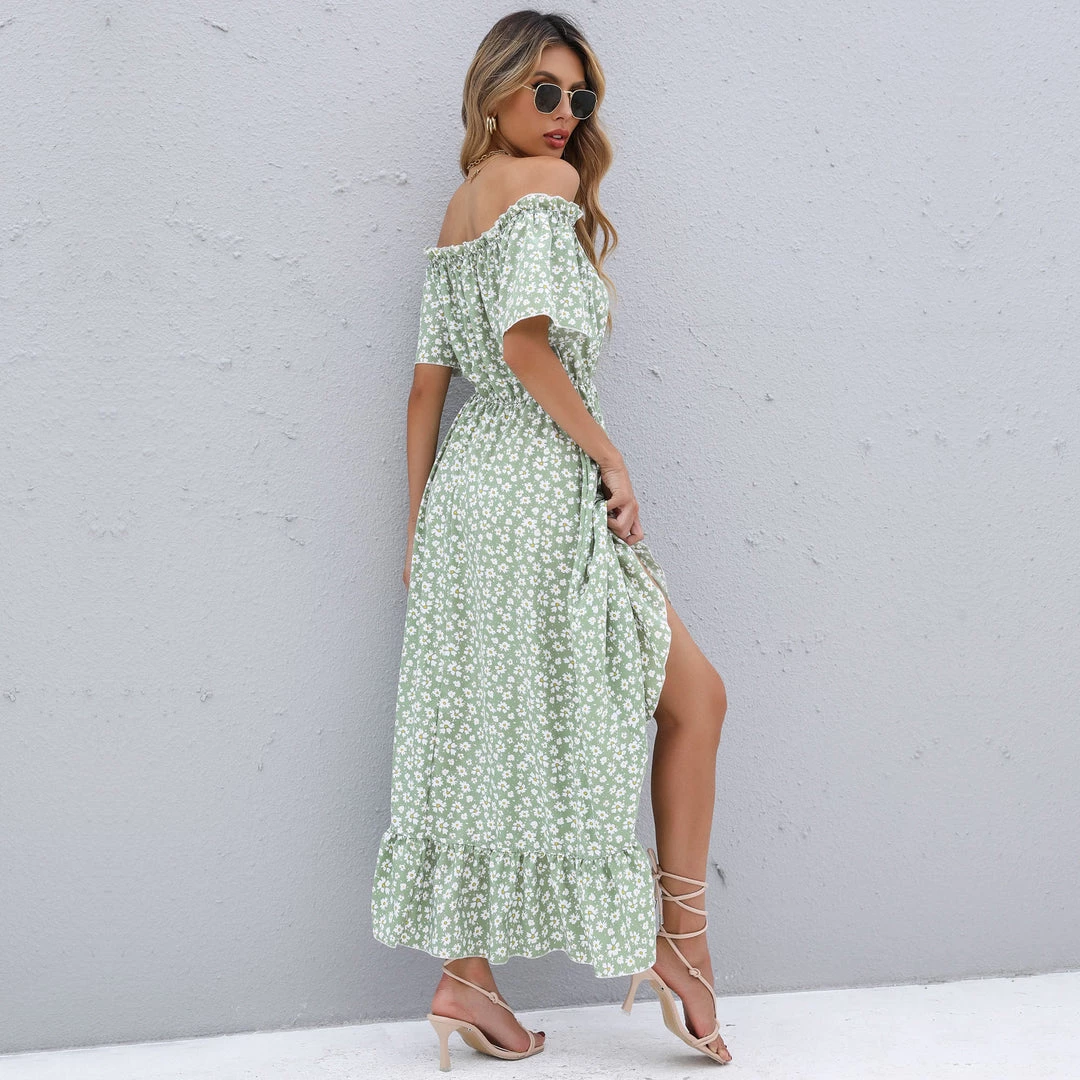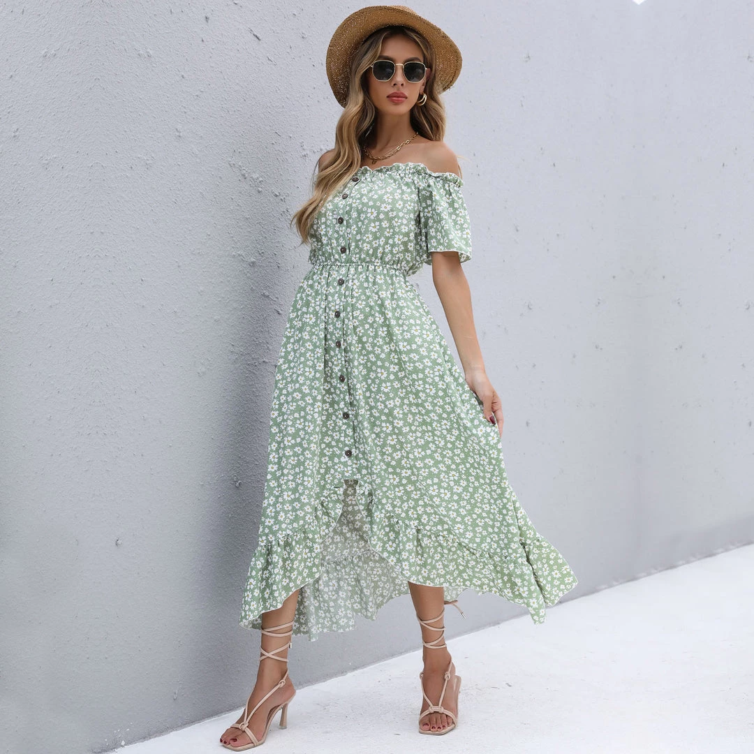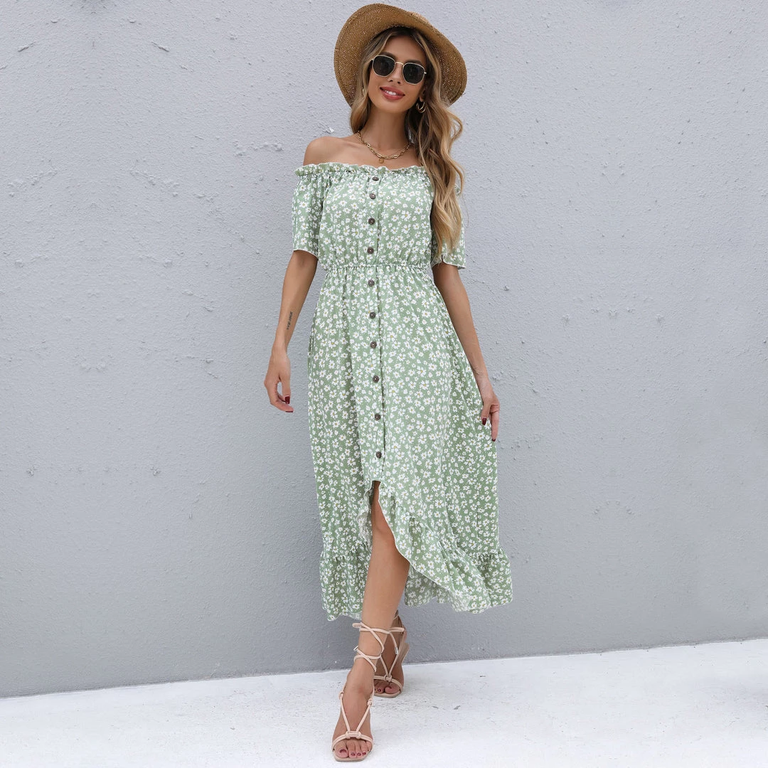 BFZY Smaibulun | Green Daisy Floral Off Shoulder Midi Dress NEW ARRIVALS