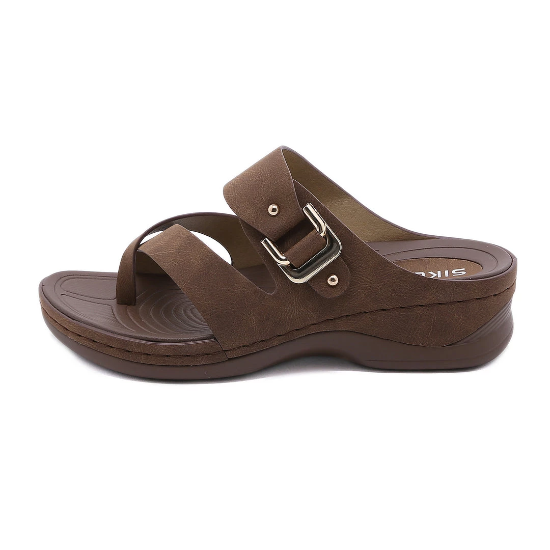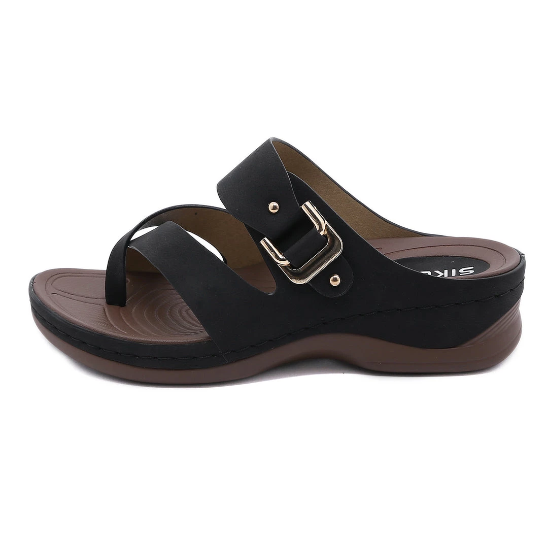 Dress to impress with these slip-on flip flop style sandals boasting a pinhole crisscross design with elevated heels for comfort and style.