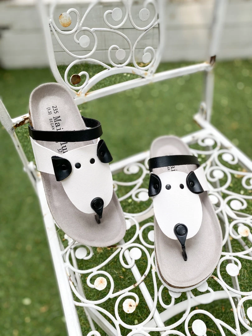 Crafted with this cute puppy face design, this sandal lends you trendy support for everyday wear with fun.