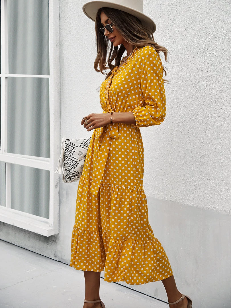 - Feature: Midi length. Relaxed fit. Quarter sleeves. Flowy skirt. Relaxed fit. Comfortable. Occasions: Casual.