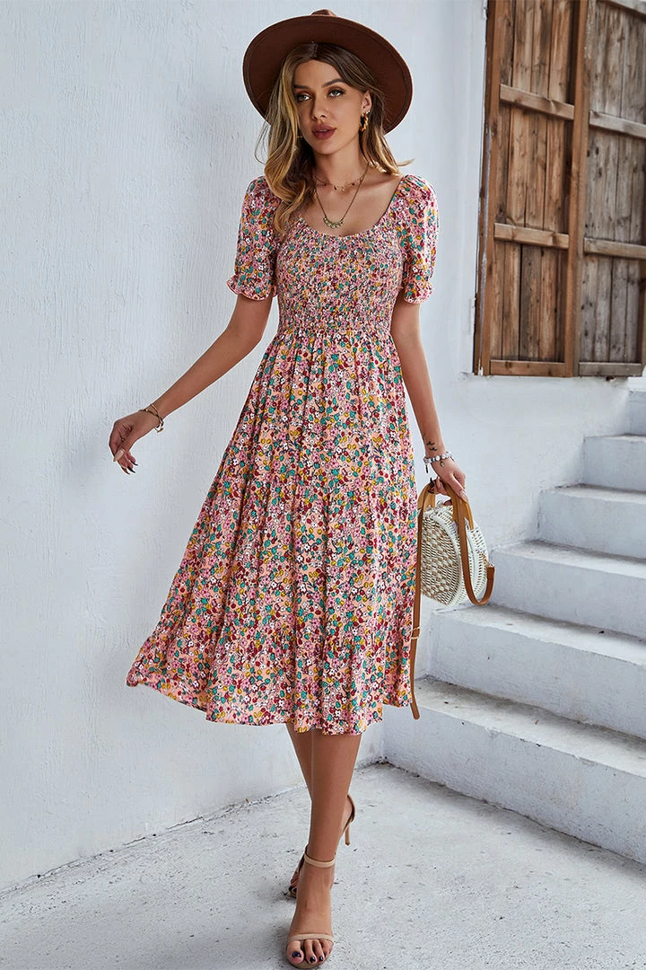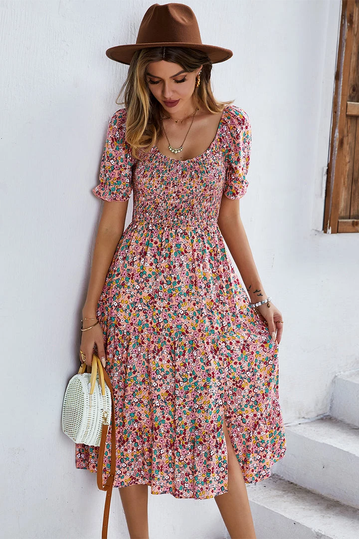 Effronte in french means cheeky which is fitting for this midi as it is a great option to wear when having a cheeky wine with the girls. Our Effronte Dress is a beautiful midi dress in a dusty pink base with daisy prints. The short sleeves, gather bust, & slip hem are feminine and flirty additions to this gorgeous season.