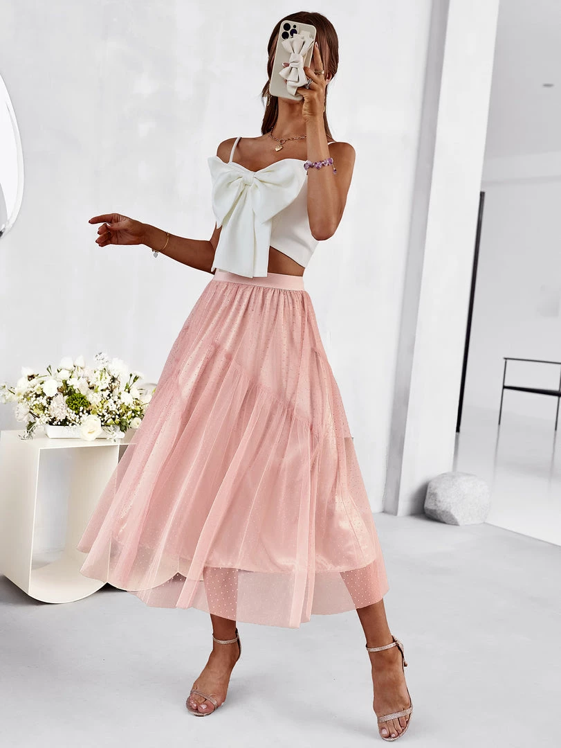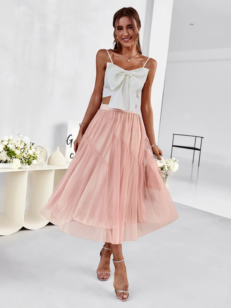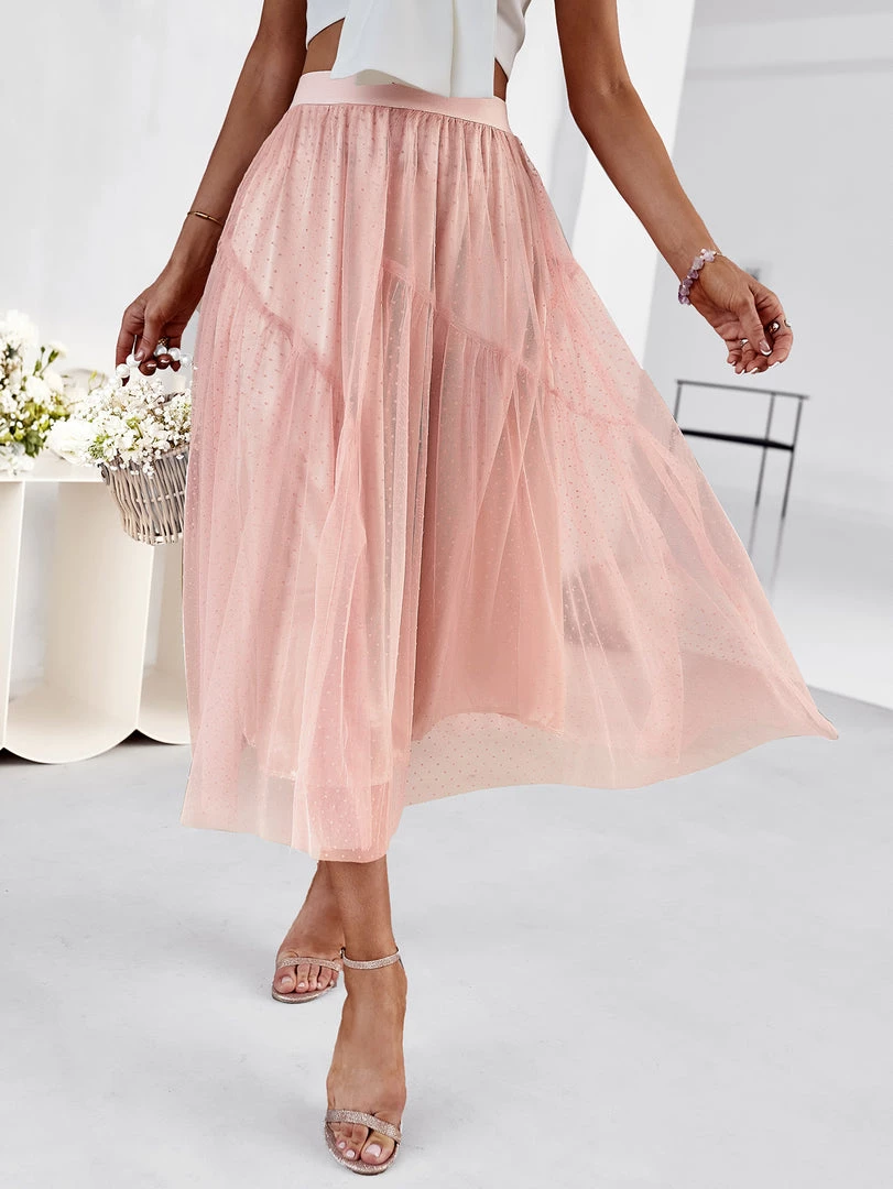 Our Elisheba Midi Skirt comes in a salmon pink colour. Lead the fashion revolution in confidence in this midi length skirt featuring a waistband and a plisse fabric creating a captivating texture to its look. Pair with our sling back heels for a vintage chic outfit.