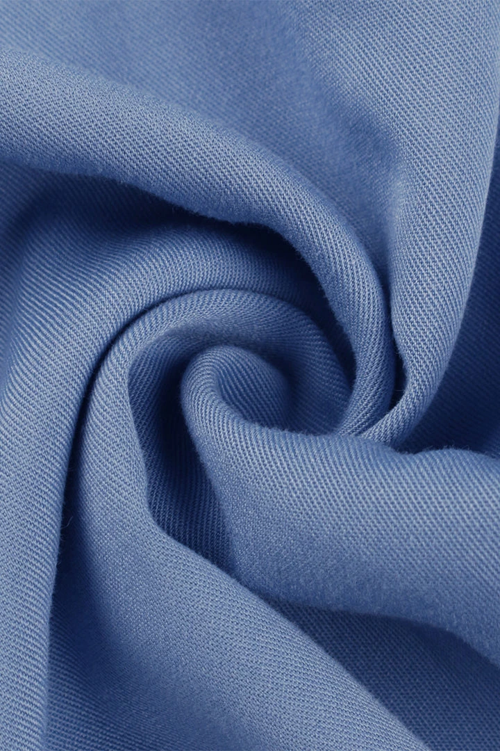 Our Iolana Dress comes in a classic maya blue tone. it features a round neckline, short sleeves and a textured pattern across the chest. This stunning midi pairs wonderfully with our sandals or heels for a stunning formal look!