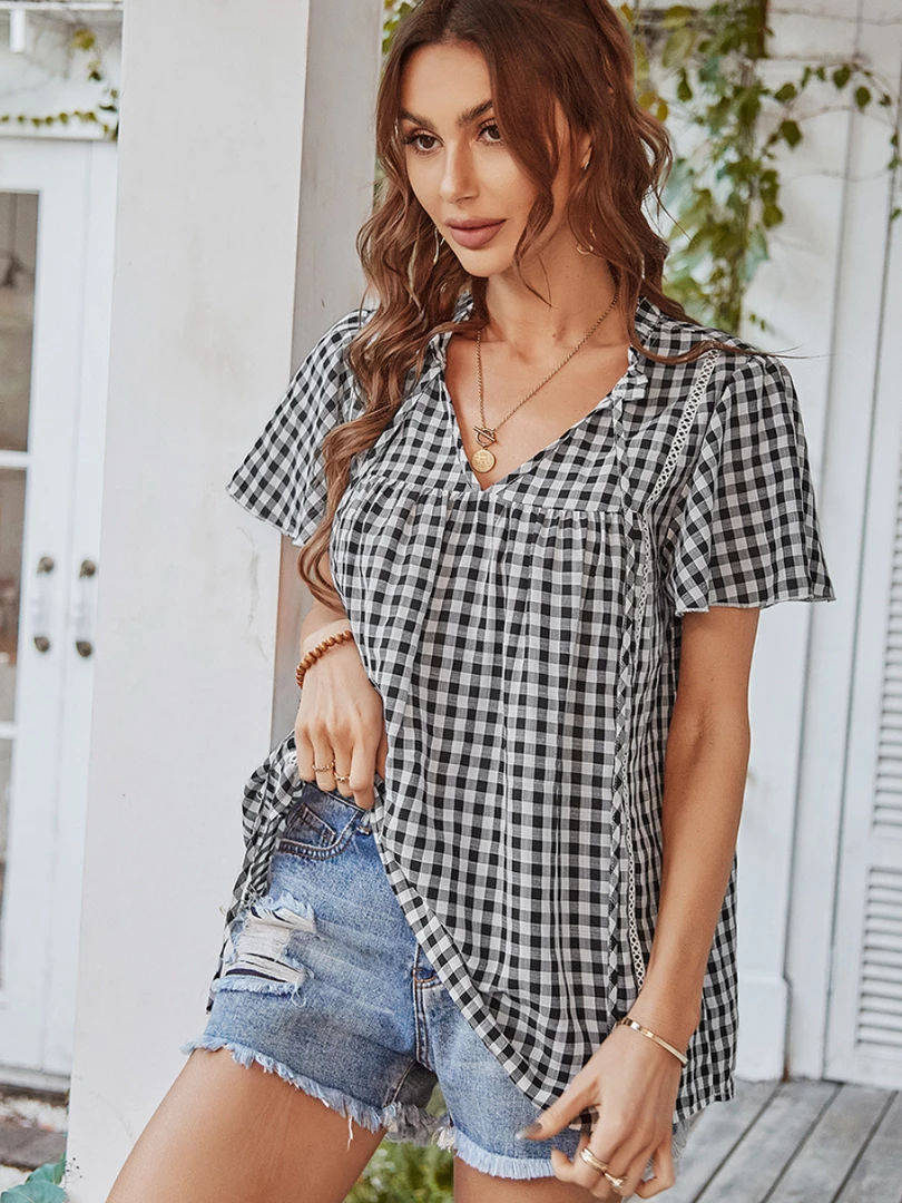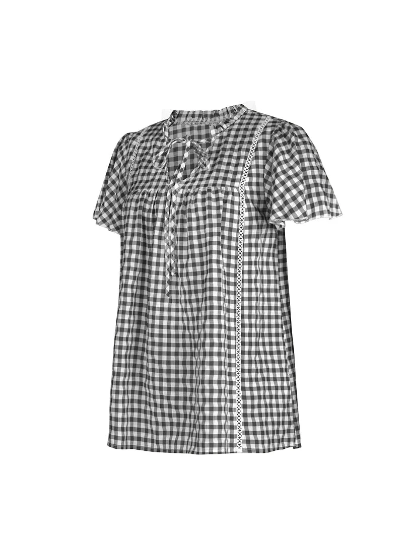 Our Rosenda Top comes in black and white gingham color. This features a shirred bodice that promotes comfort! Pair with your favorite pants or shorts for an easy chic look! xxoo