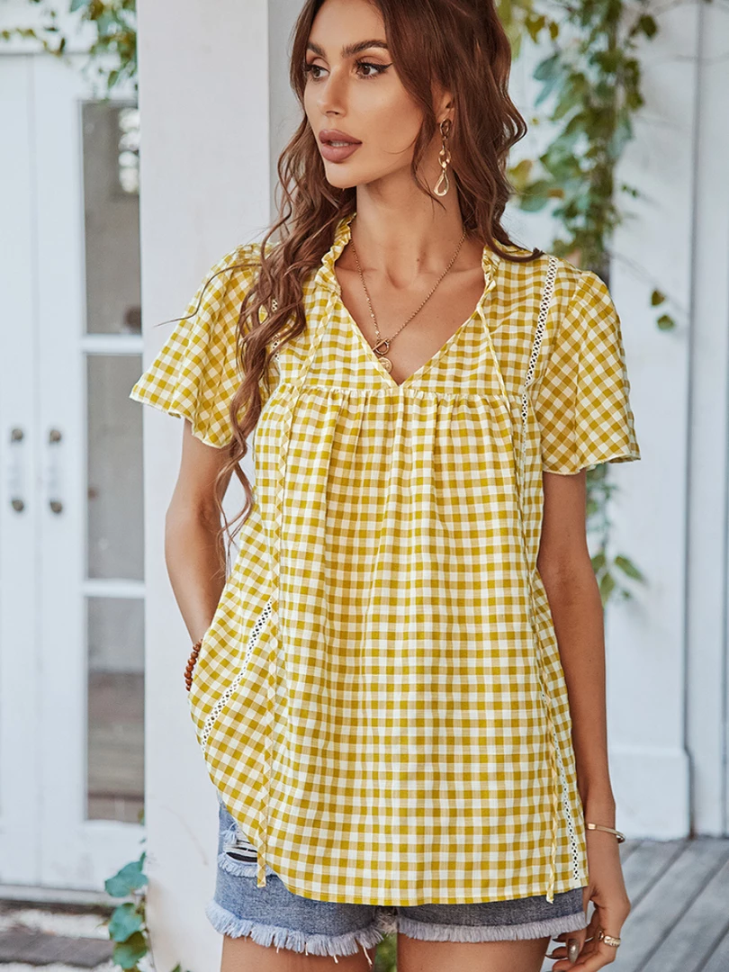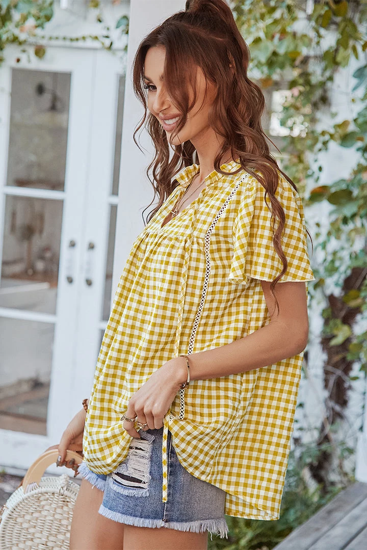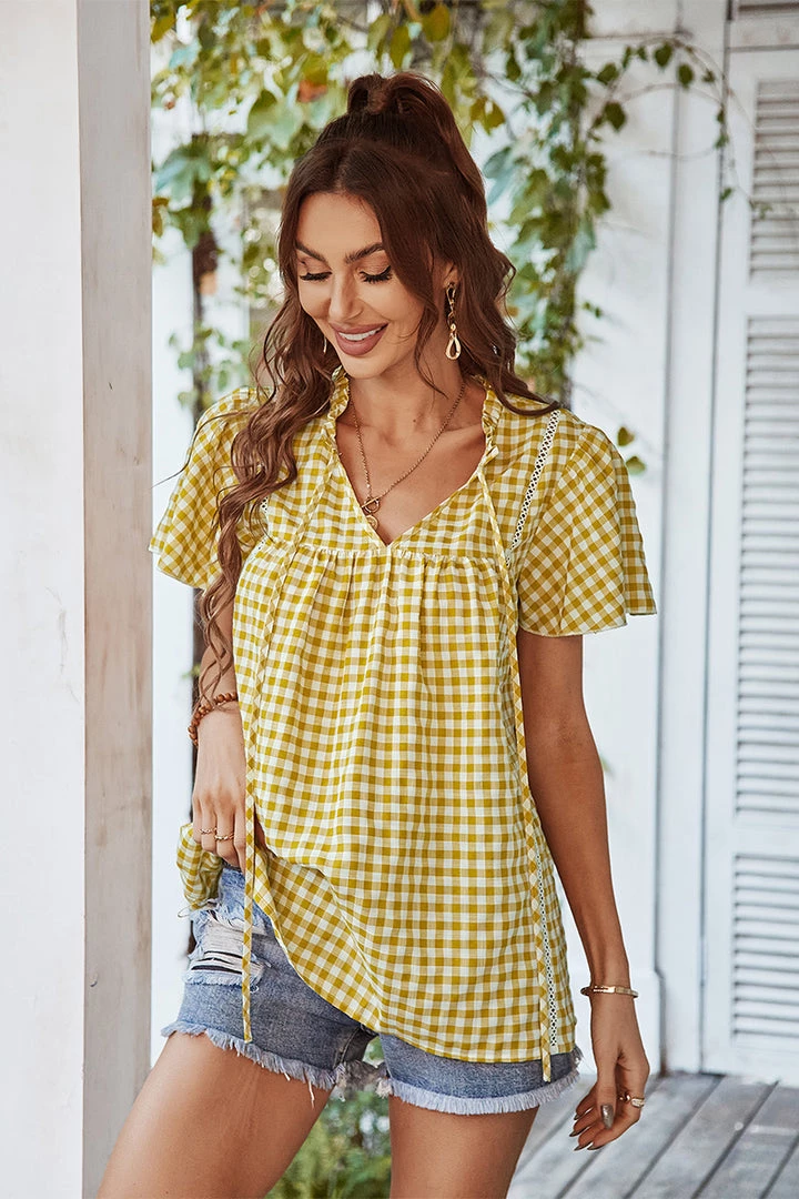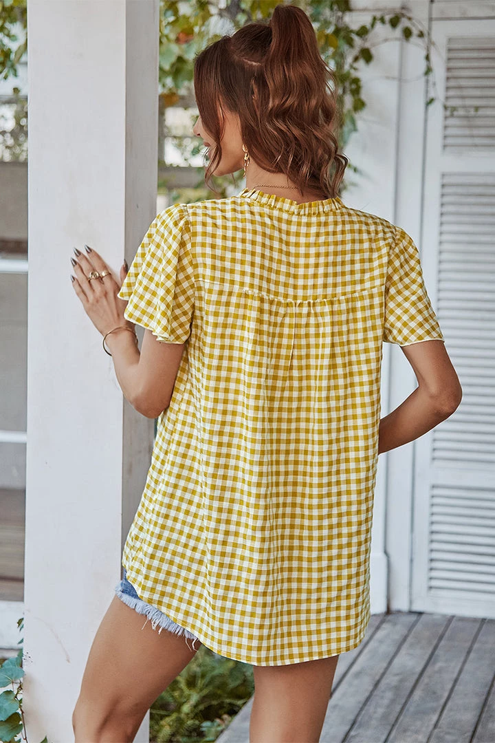 Our Rosenda Top comes in yellow, mustard and white gingham color. This features a shirred bodice that promotes comfort! Pair with your favorite pants or shorts for an easy chic look! xo