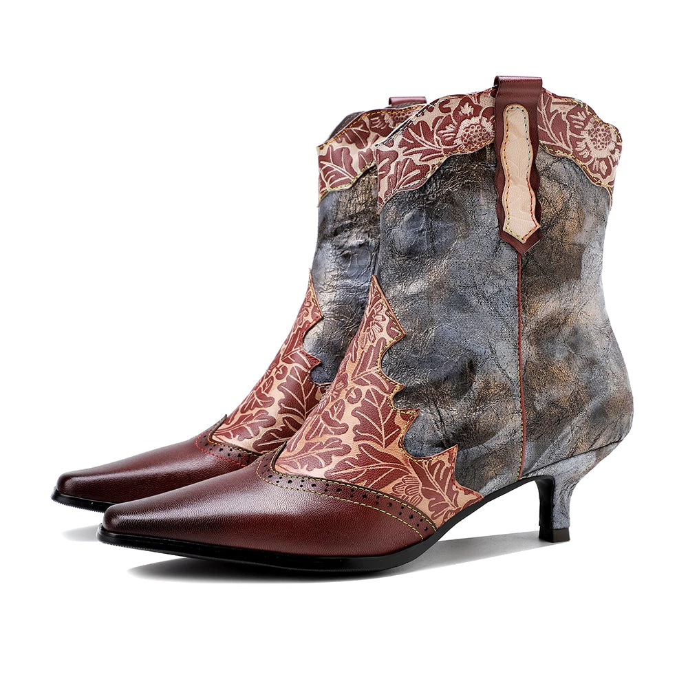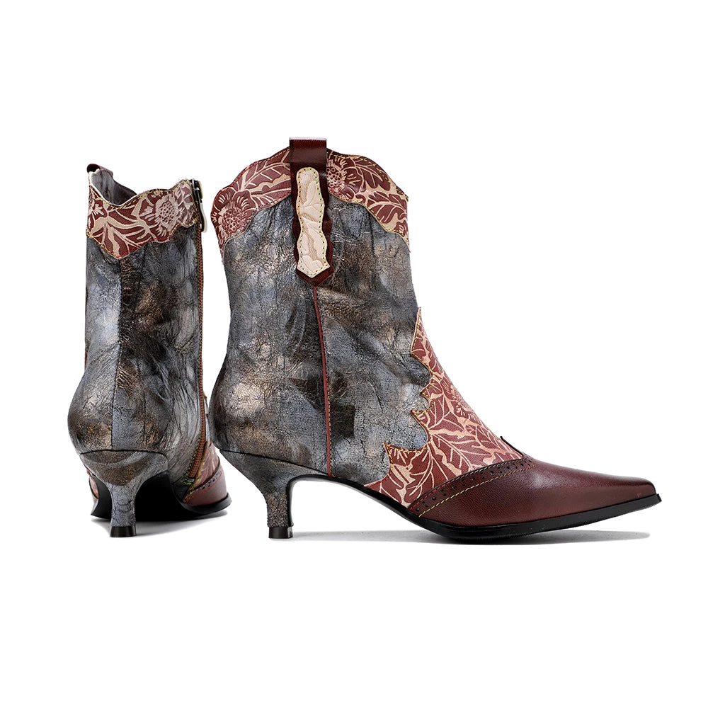 Give your footwear collection a antique boost with this distress antique bootie showing off a deep hue and walk like a fashion cowgirl.