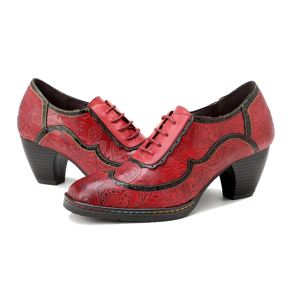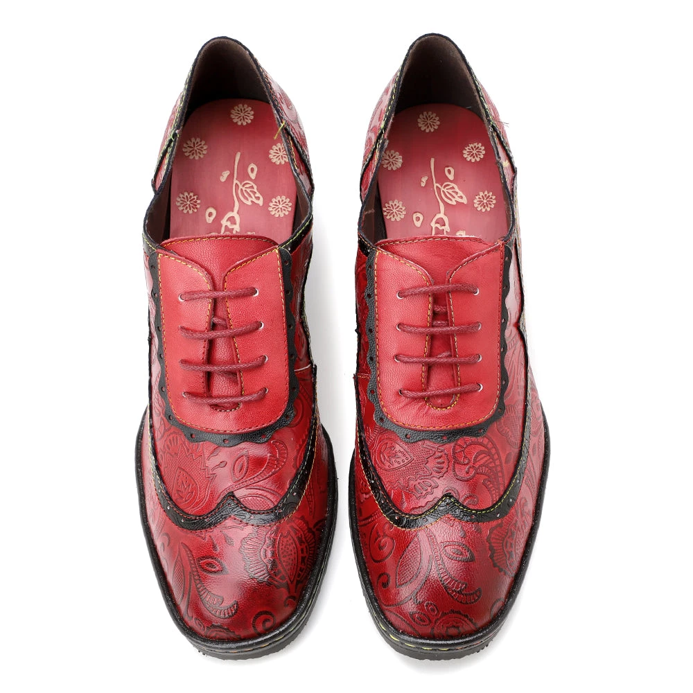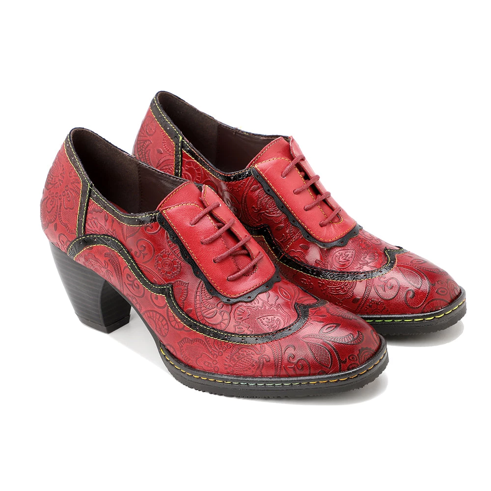 Remix your downtown looks with these show-stopping oxford booties, made with a dynamic color blocked leather upper and floral embossed craft for an eclectic take on modern style. Stacked heels complete the pair with a walkable boost of height.