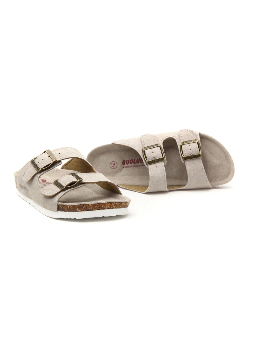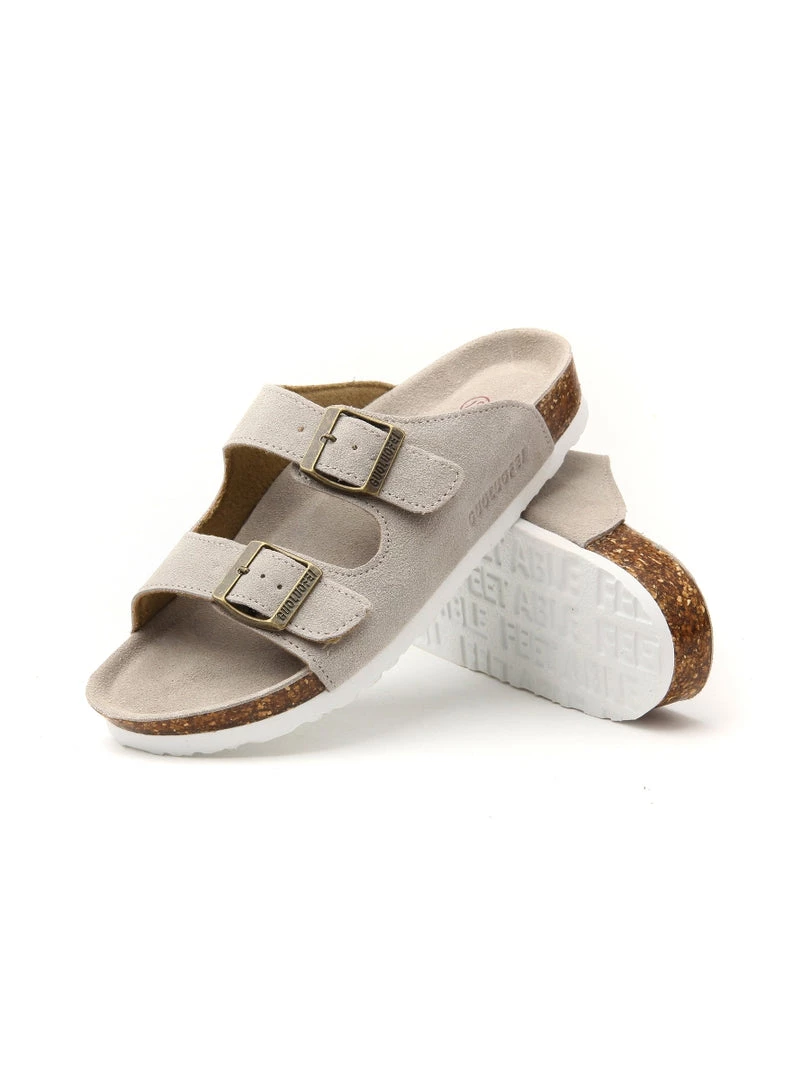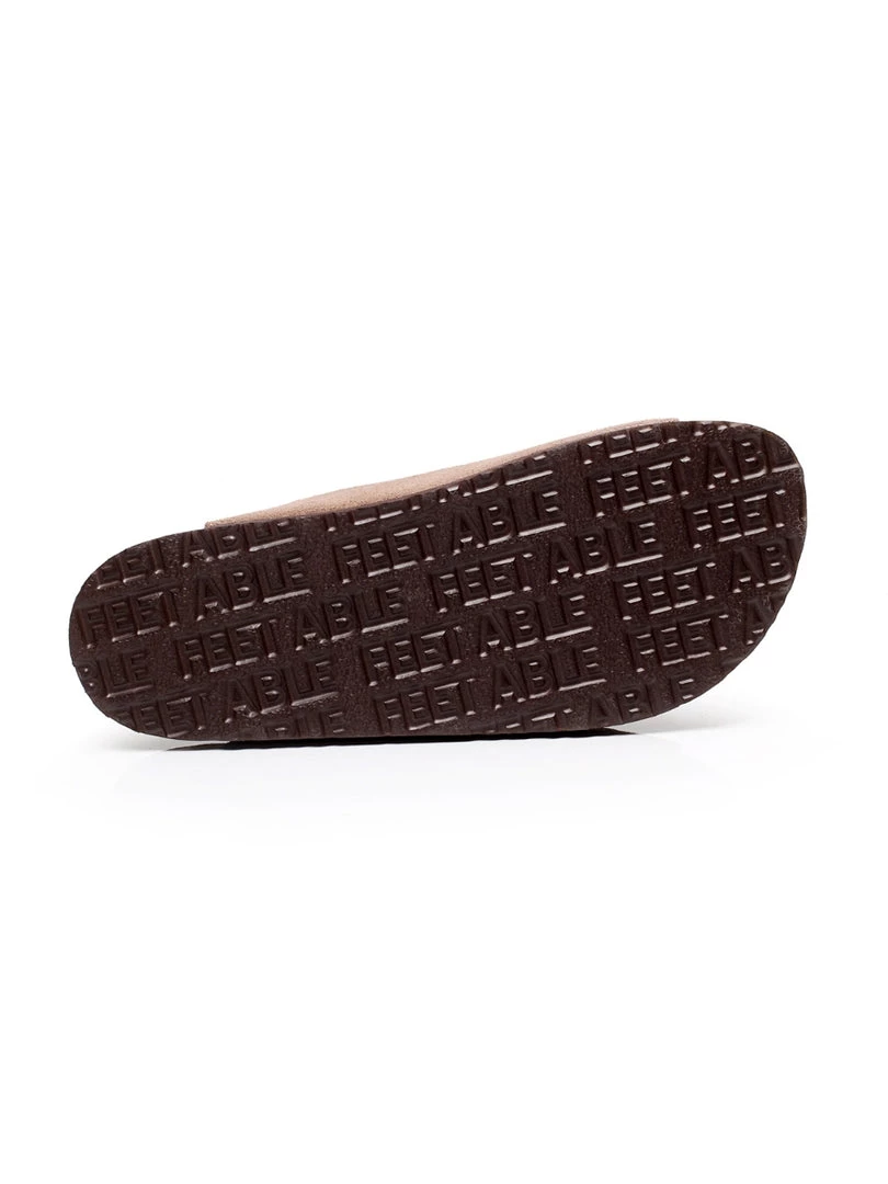 A double strap stretches across the foot for comfortable, secure steps in this pair of durable slide-on sandals crafted with high-quality materials for years of wear.