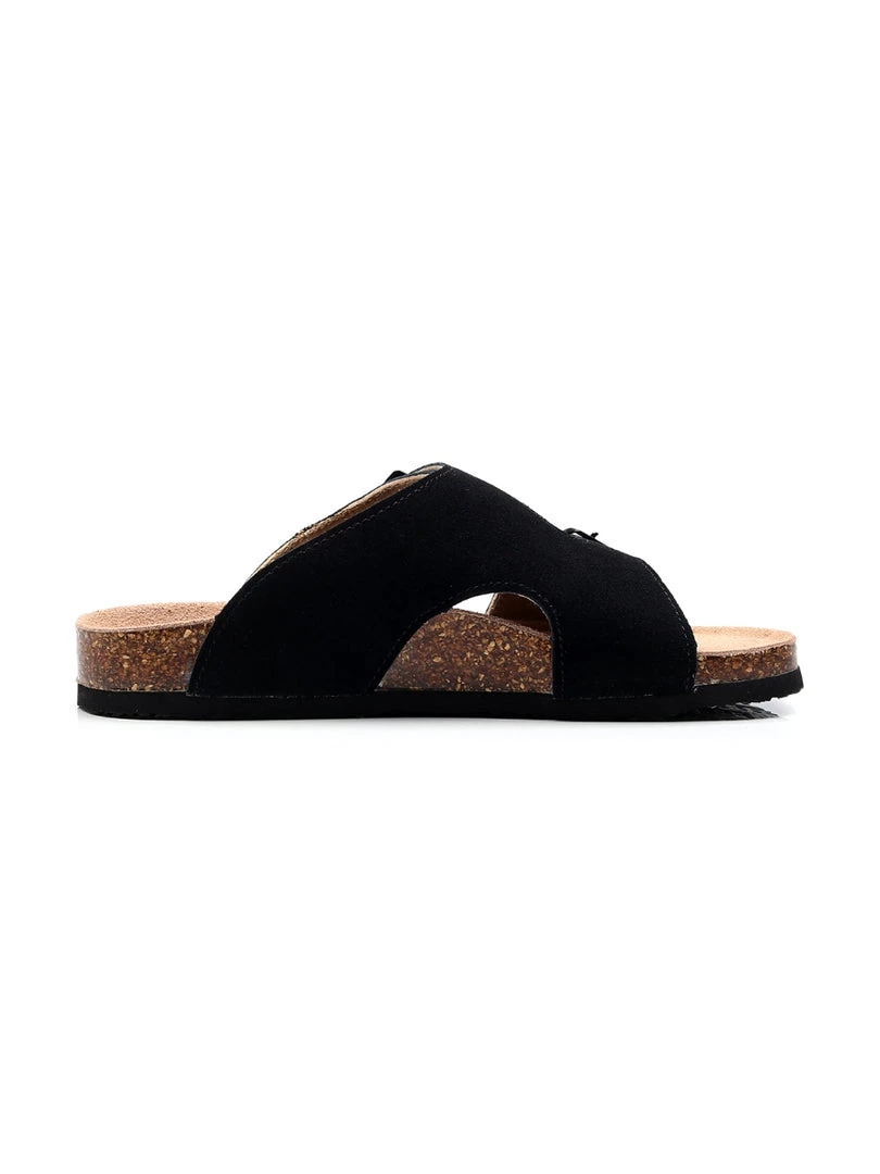 Crisscrossing straps enhanced with an adjustable buckle closure deliver customized comfort in this chic suede slide.