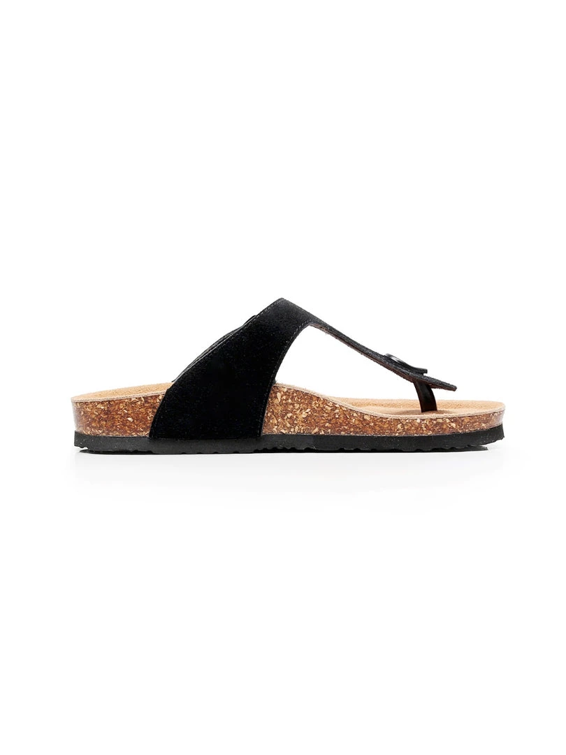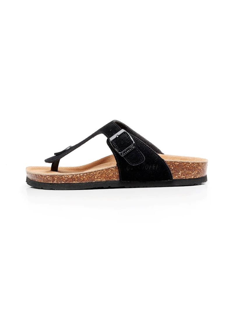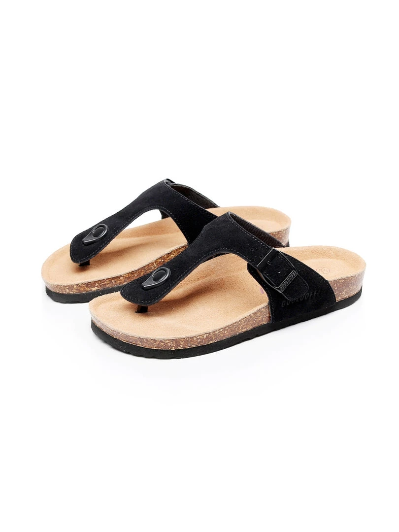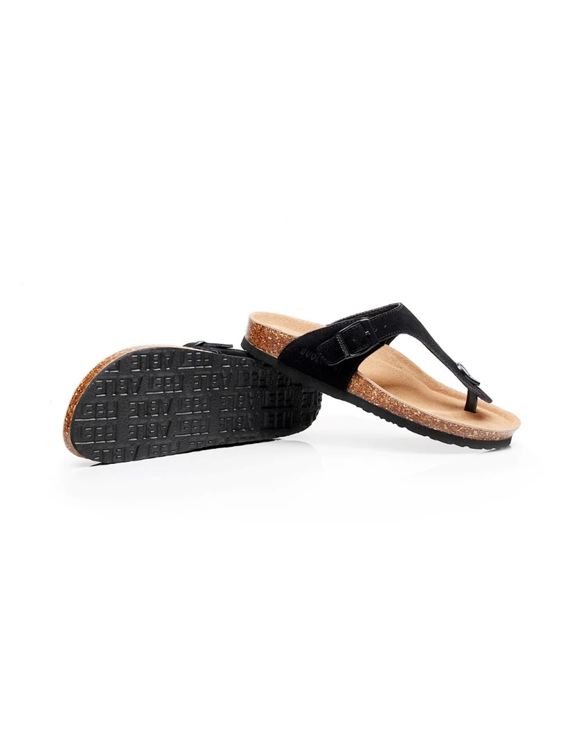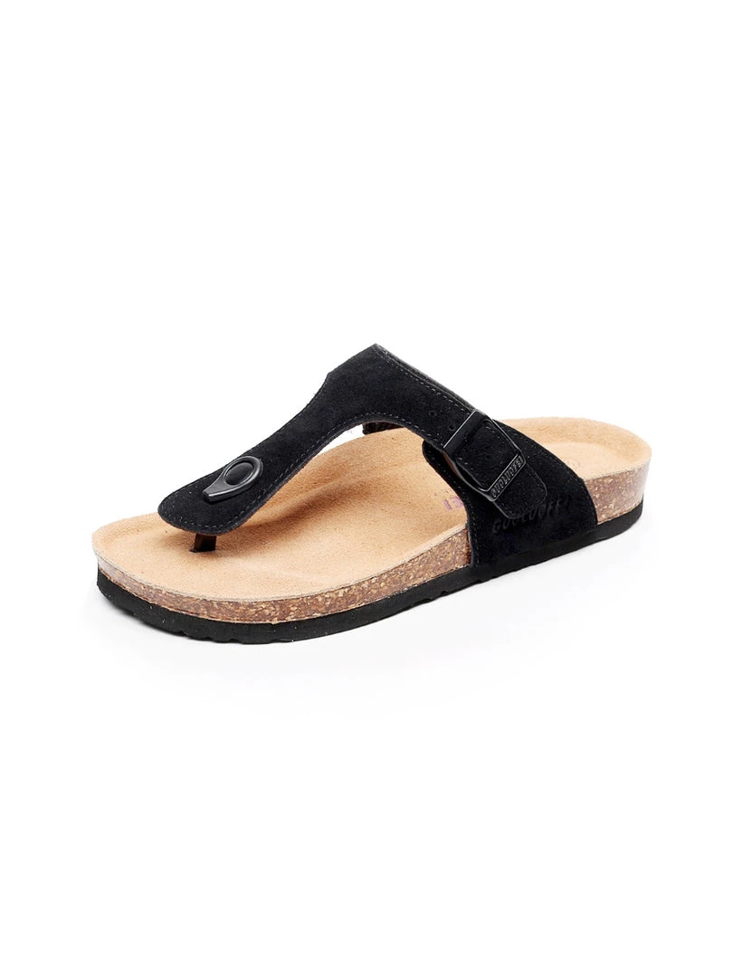 A T-shaped strap stretches across the foot for comfortable, secure steps in this pair of durable slide-on sandals crafted with high-quality materials for years of wear.