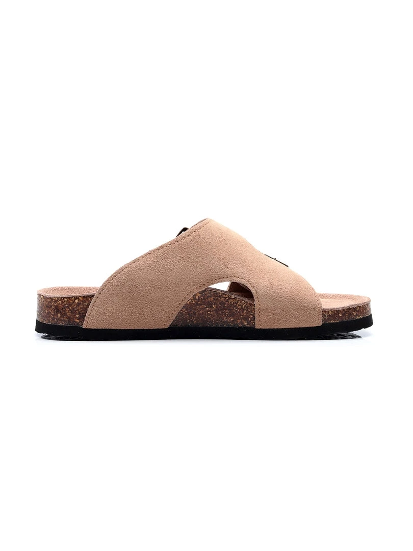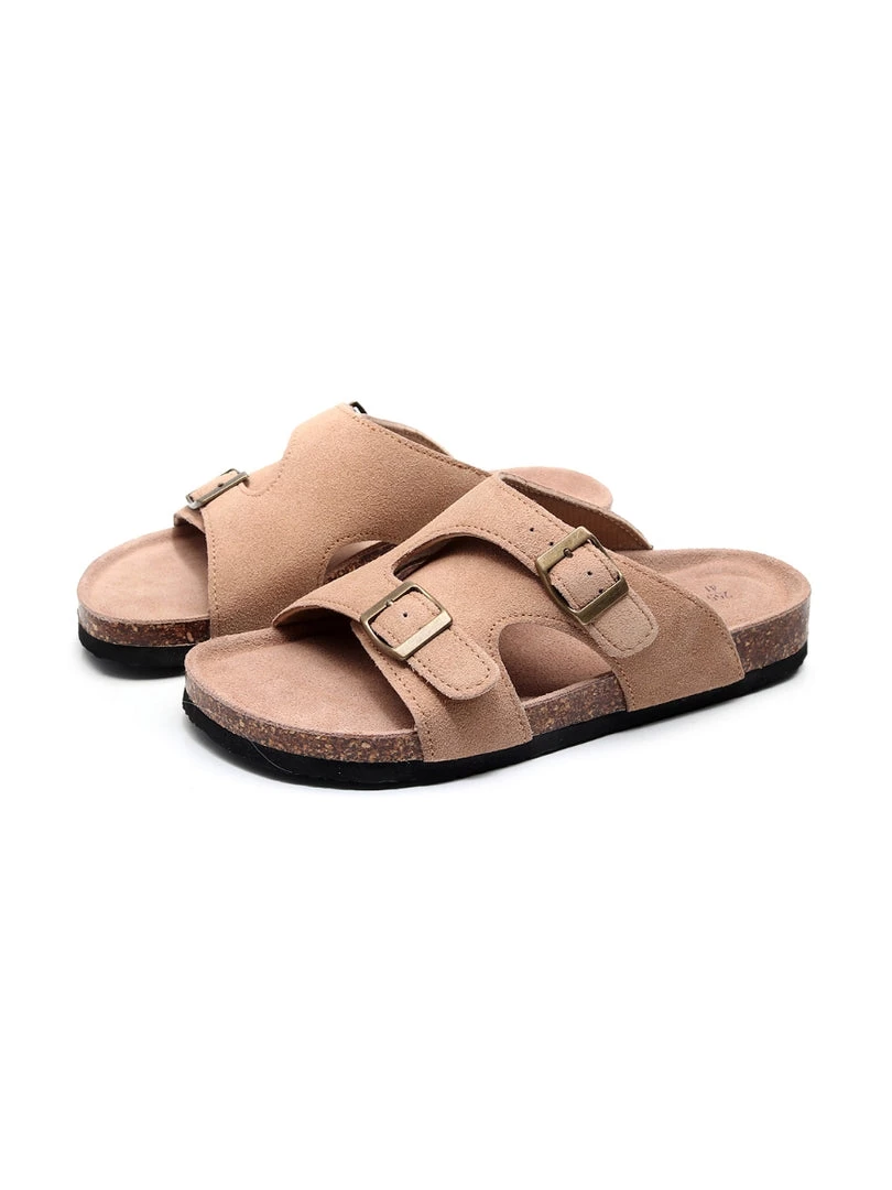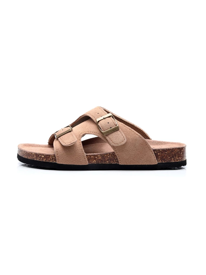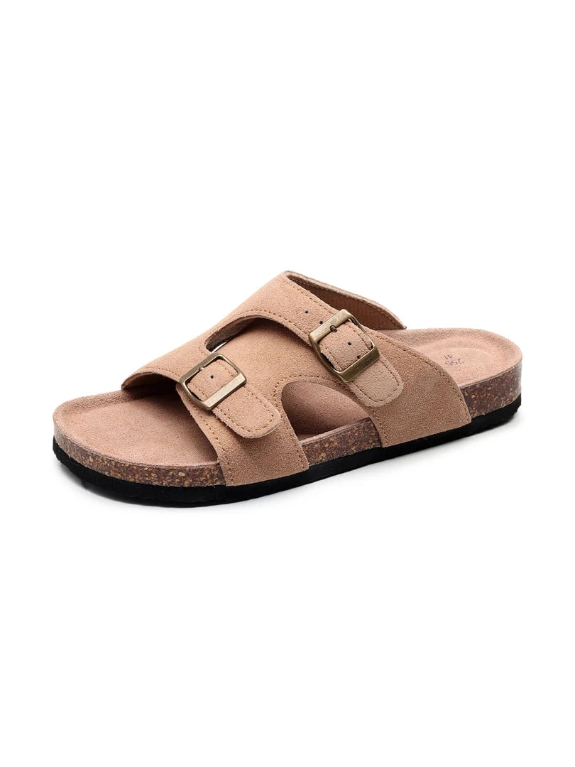 Crisscrossing straps enhanced with an adjustable buckle closure deliver customized comfort in this chic suede slide.
