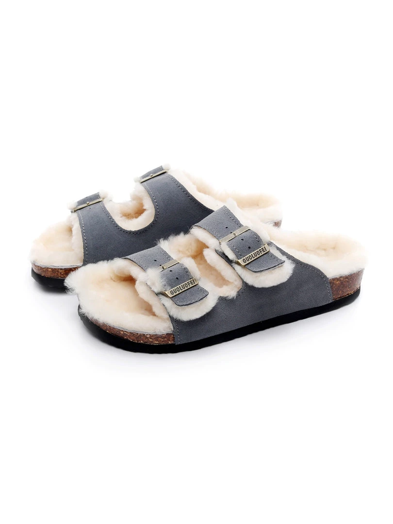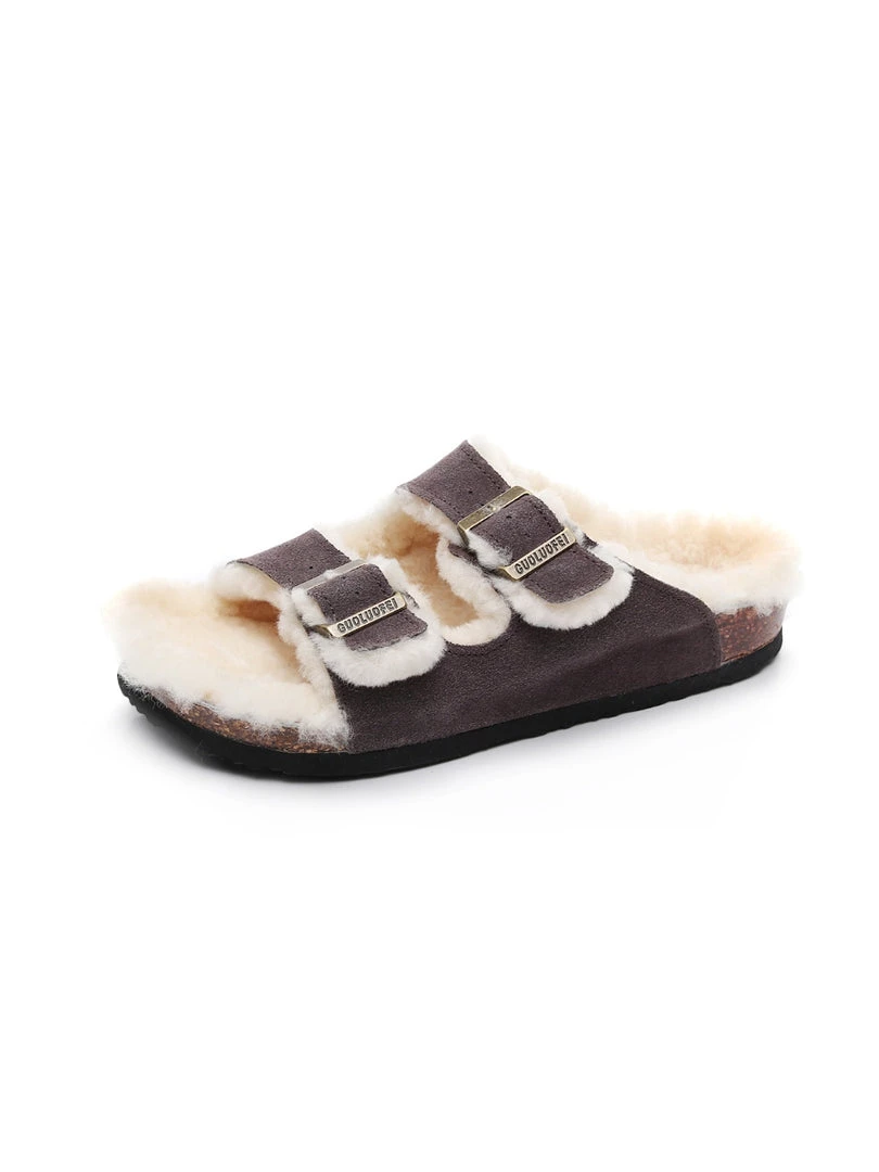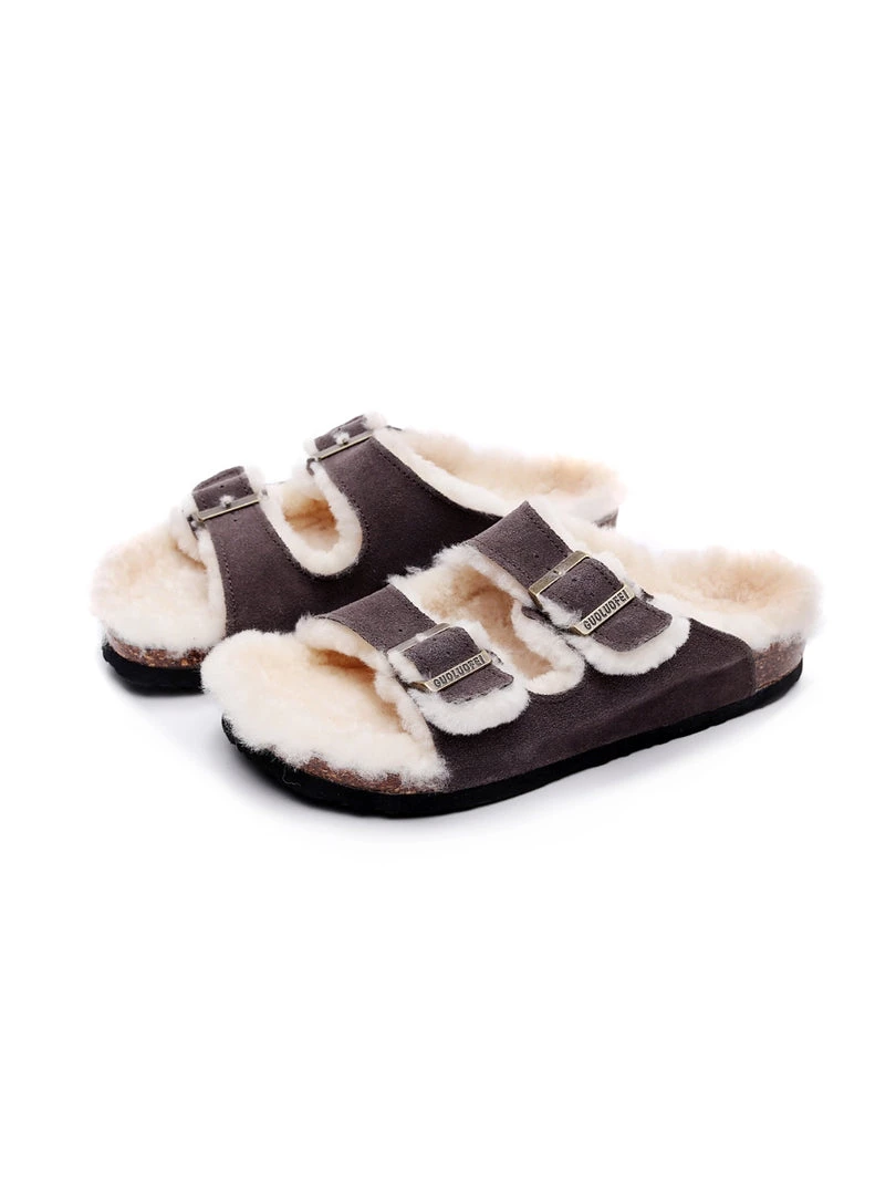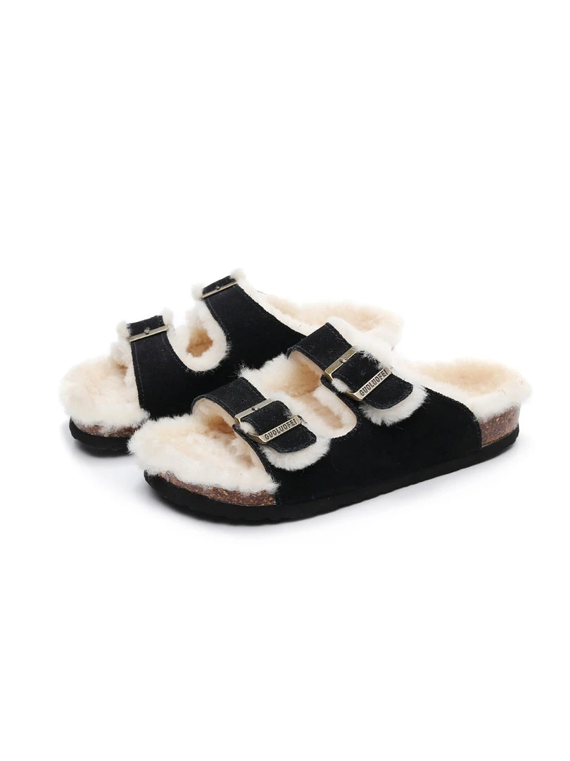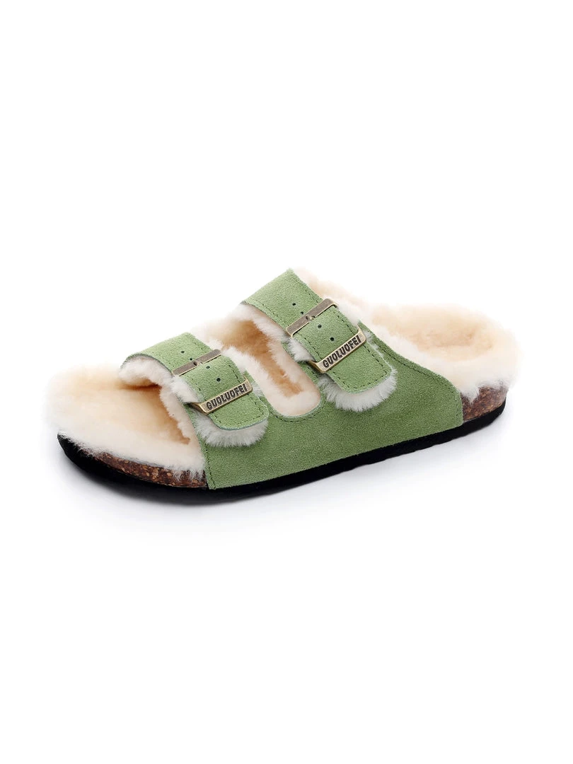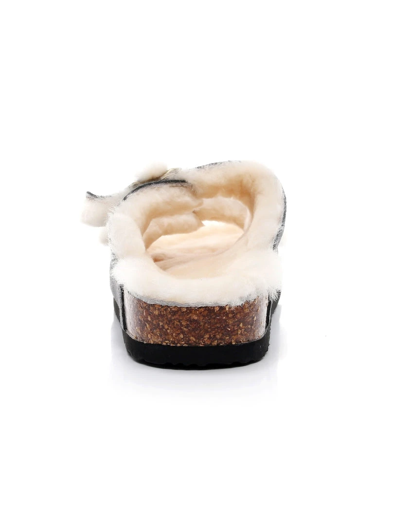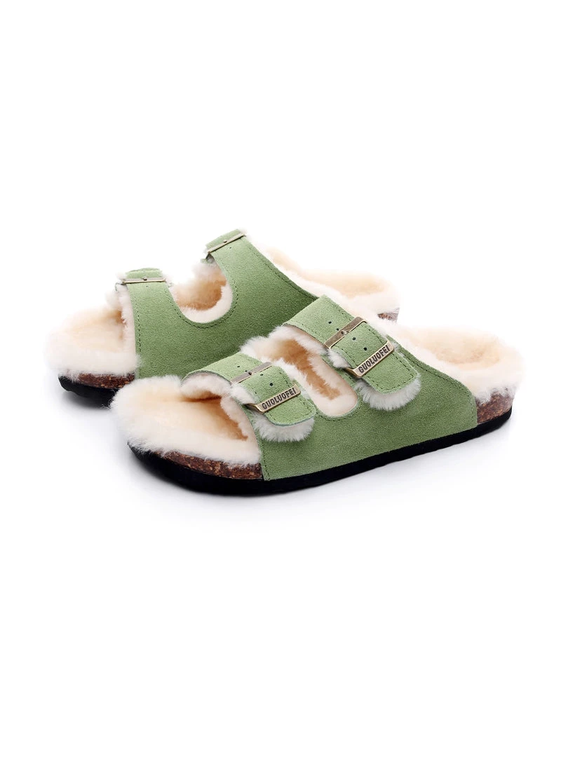 Slip into comfort with this smoothly-crafted leather sandal, lined with a plush wool for optimal cushioning with every step. Shining buckles atop a solid hued upper offer trending mix-and-match versatility with other wardrobe favorites.