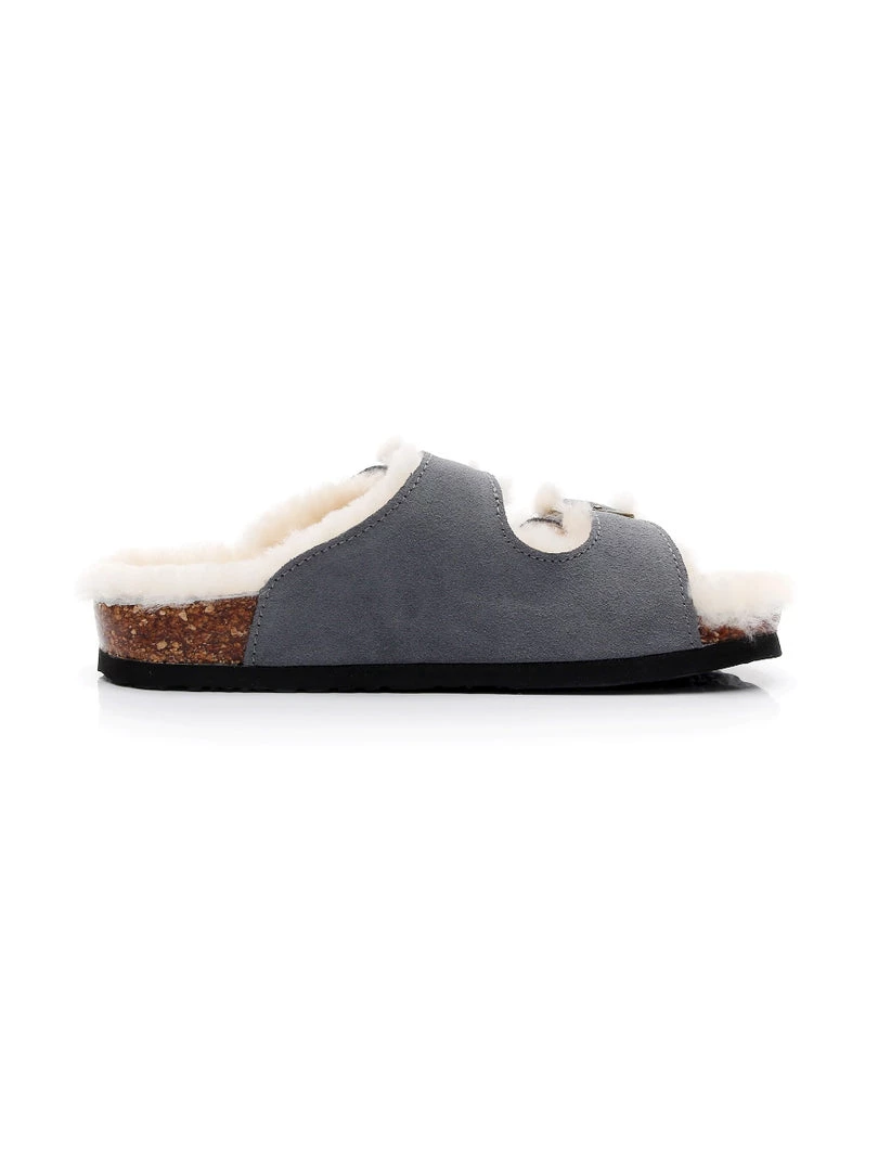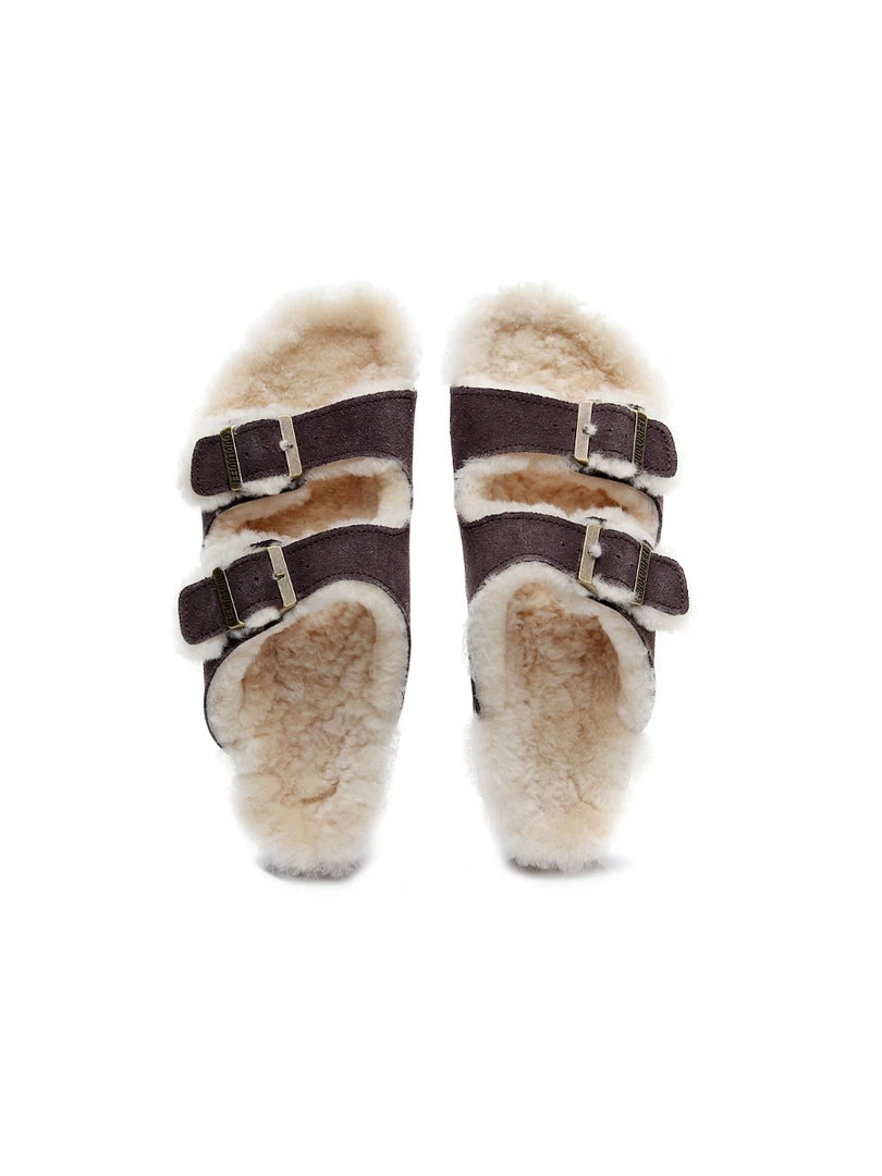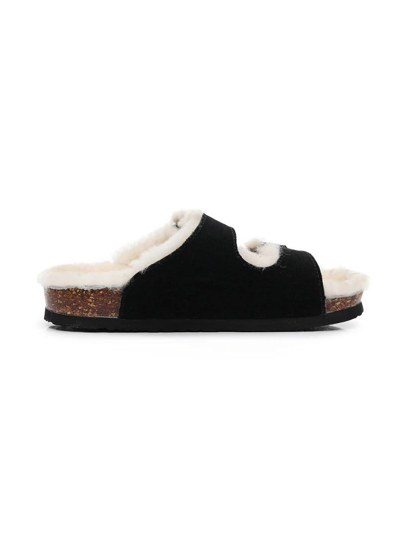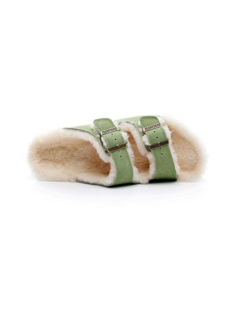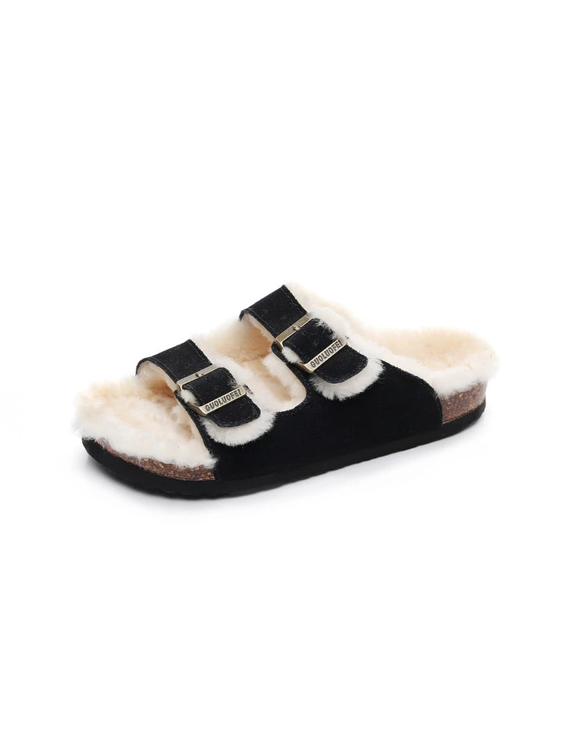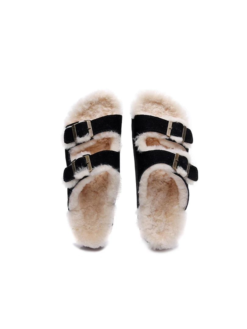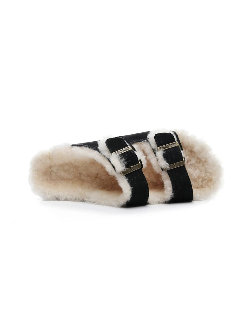 Slip into comfort with this smoothly-crafted leather sandal, lined with a plush wool for optimal cushioning with every step. Shining buckles atop a solid hued upper offer trending mix-and-match versatility with other wardrobe favorites.