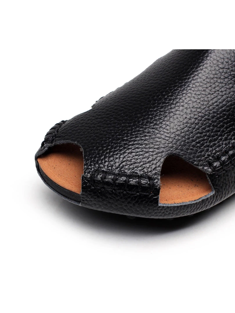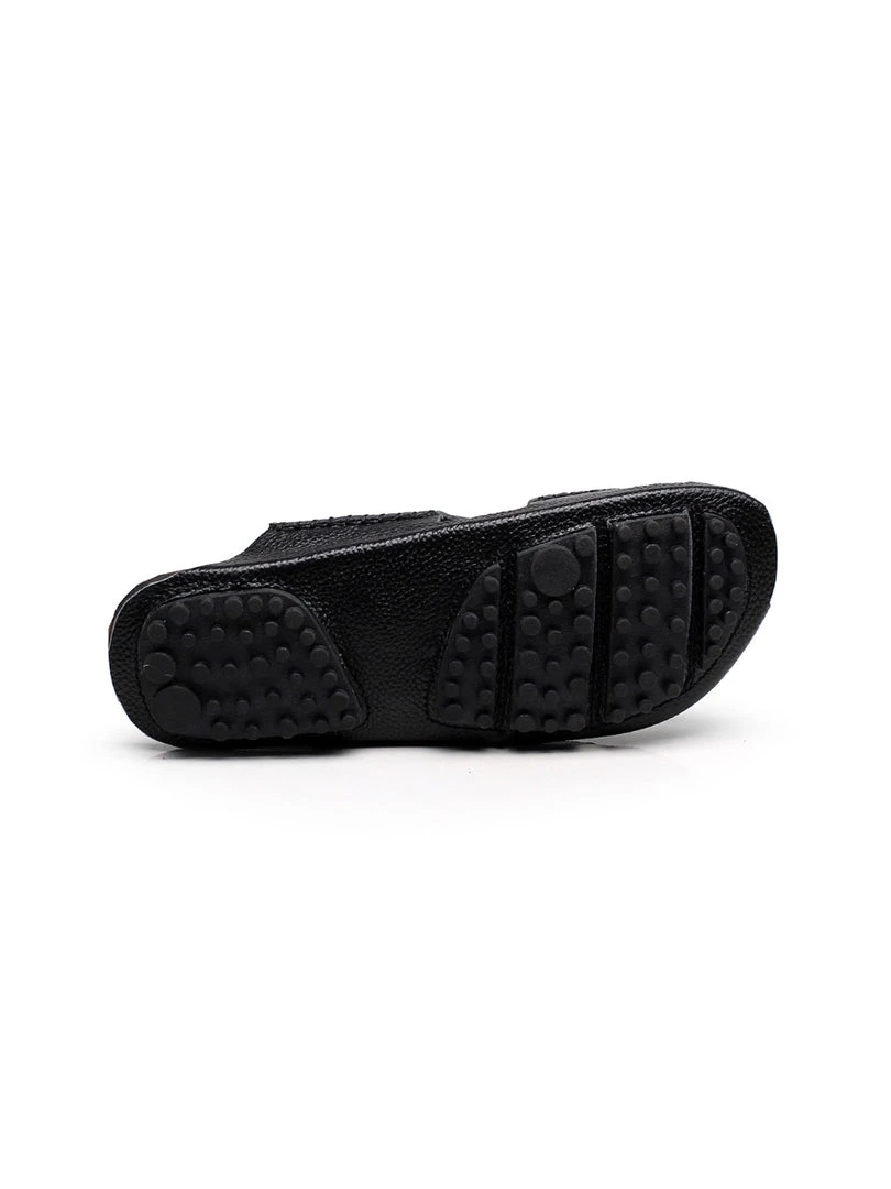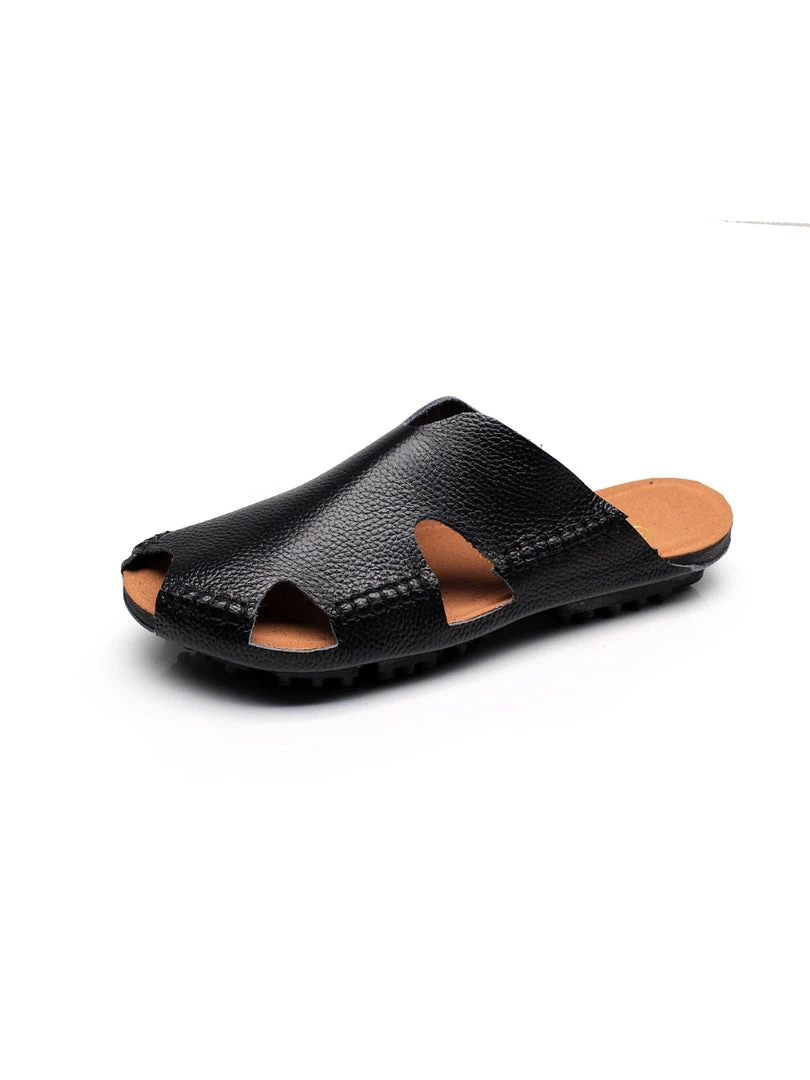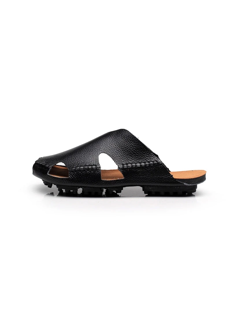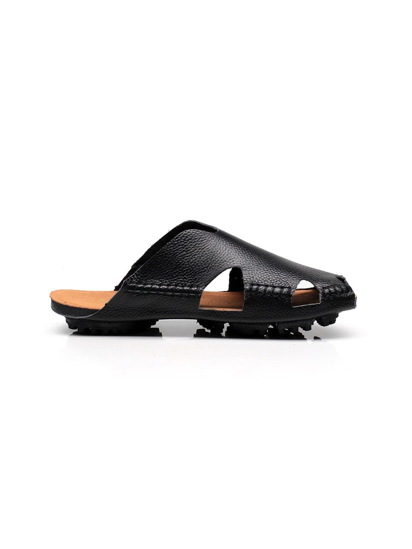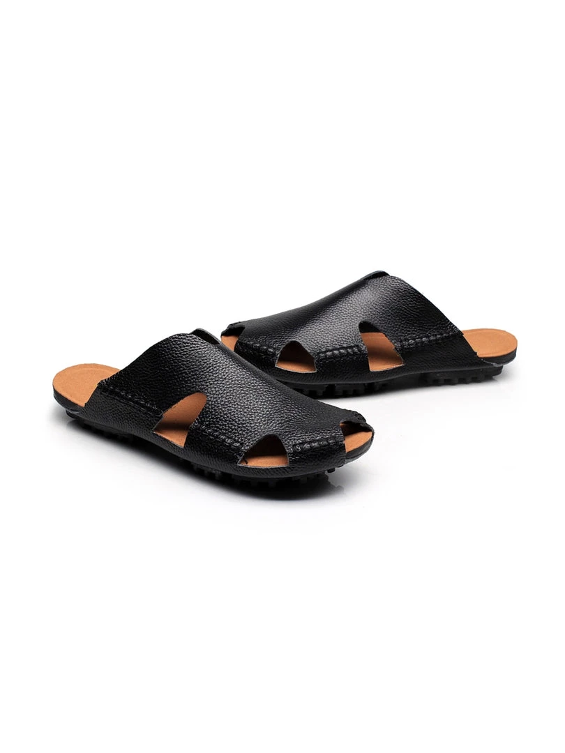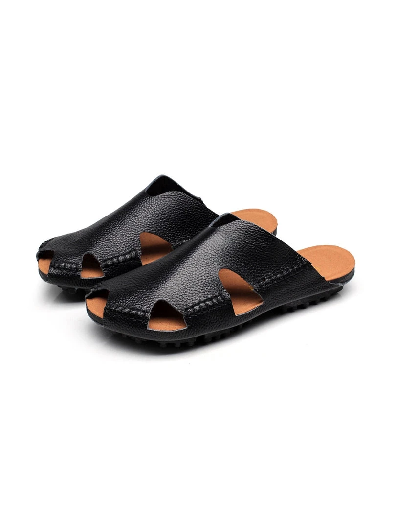 Upgrade your sunny-day ensembles with these soft leather slide sandals featuring a cut-out upper, cushioned insole and massage anti-skid rubber sole to keep you stepping comfortably all day.