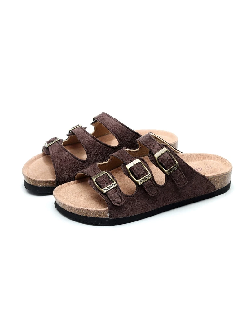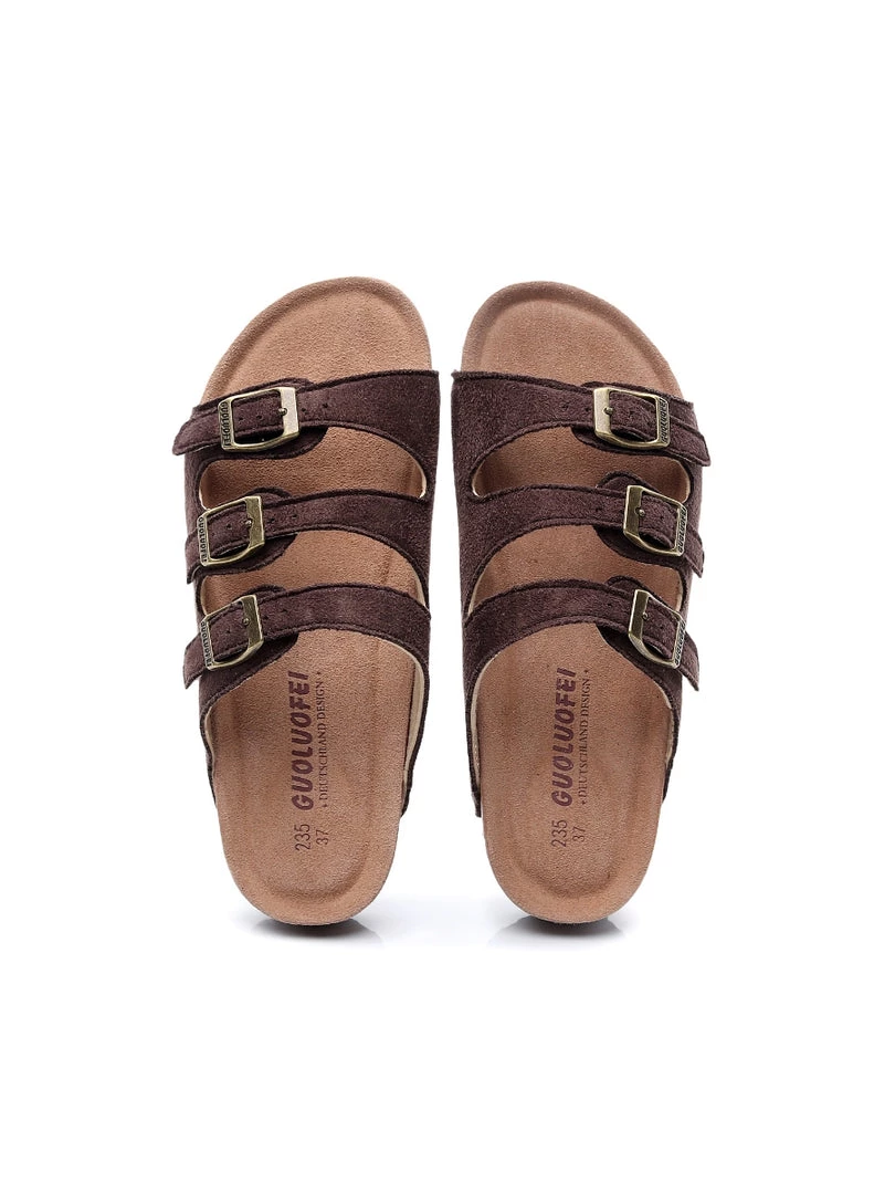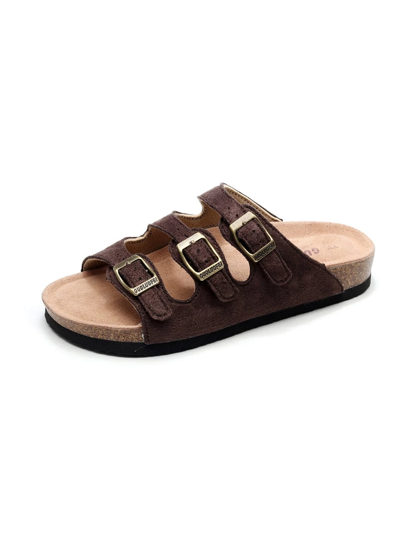 Three supersoft suede straps with adjustable buckle closures create a modern twist on a time-honored style in this chic yet comfy sandal.
