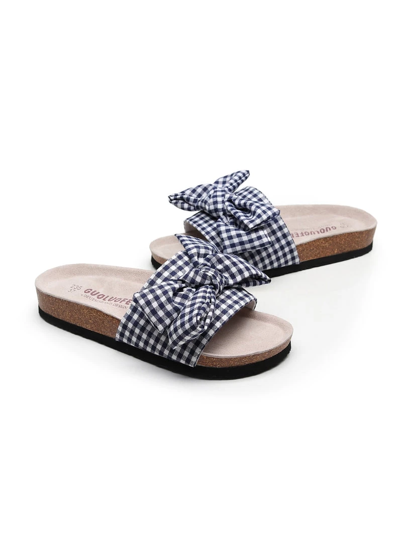 Gingham textile adds casual charm and a pop of print to your look in this pair of effortless slides designed with a comfortable footbed.