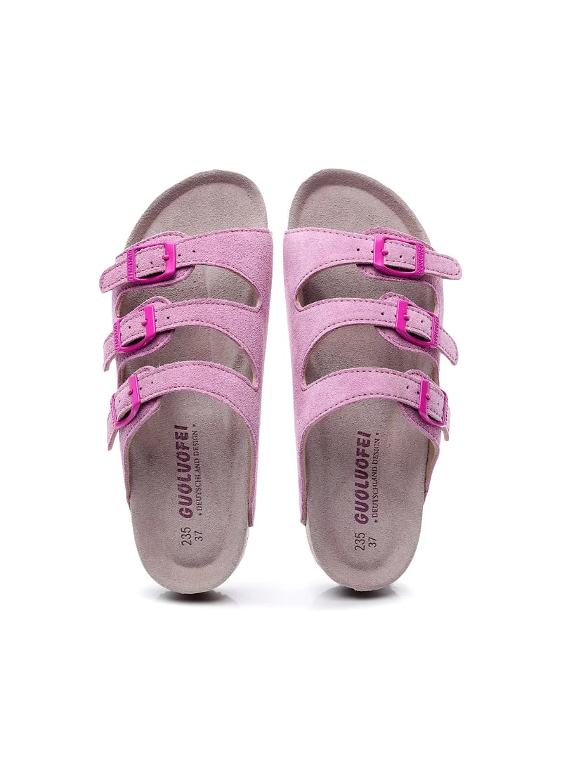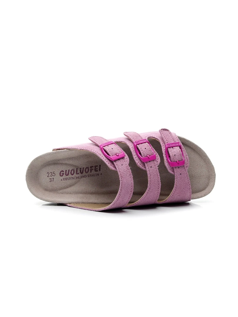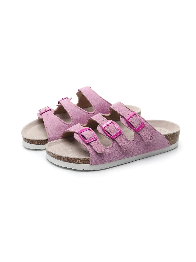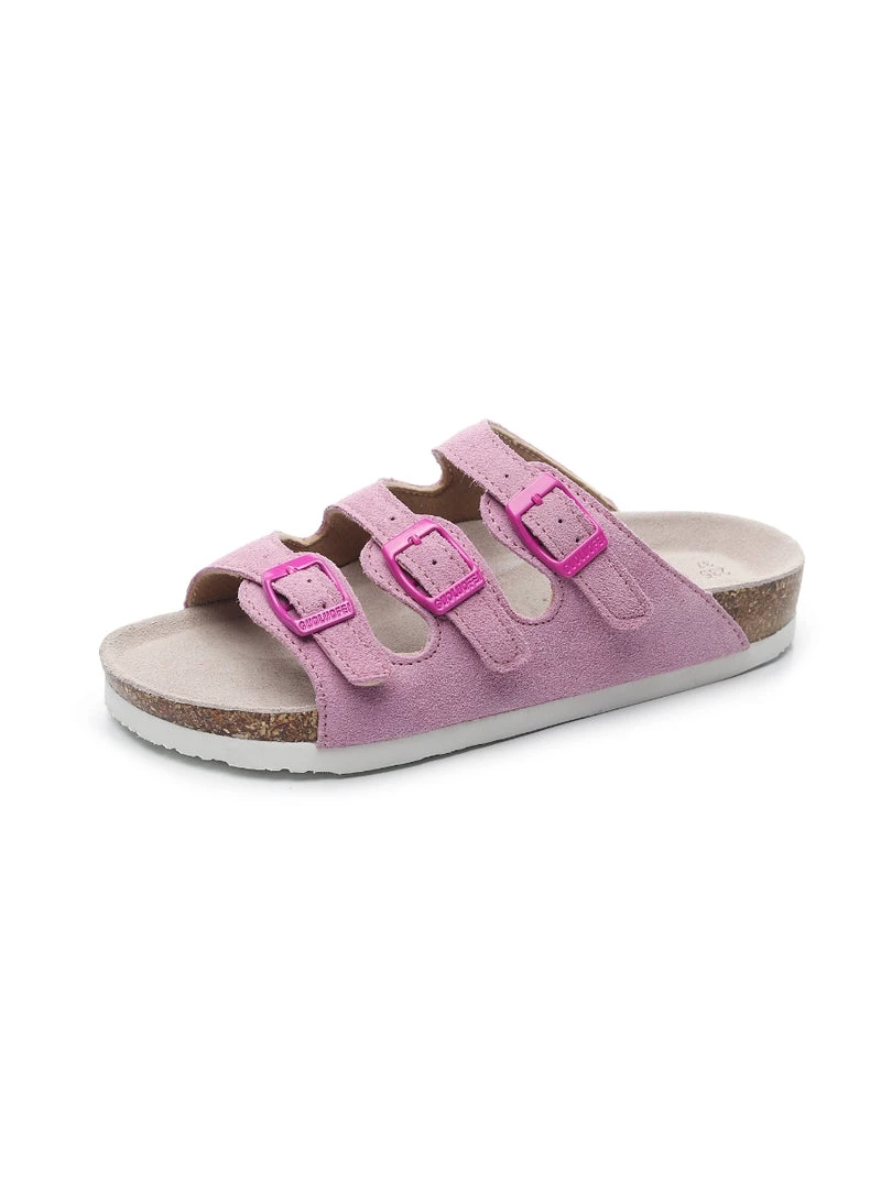 Three supersoft suede straps with adjustable buckle closures create a modern twist on a time-honored style in this chic yet comfy sandal.