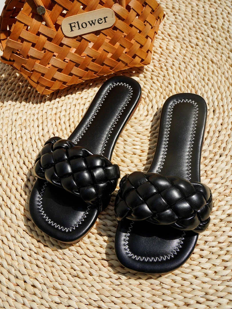 Put your fashionable foot forward in this easy-on slides featuring an on-trend braided strap and flat heel for stylishly warm-weather wear.