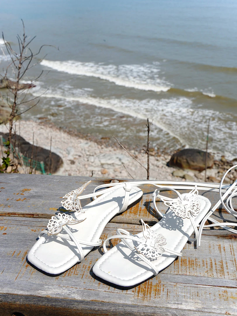 Featuring pair of flying butterfly design and an ankle straps detail, these gladiator slides are a must-have for your chic warm-weather wardrobe.