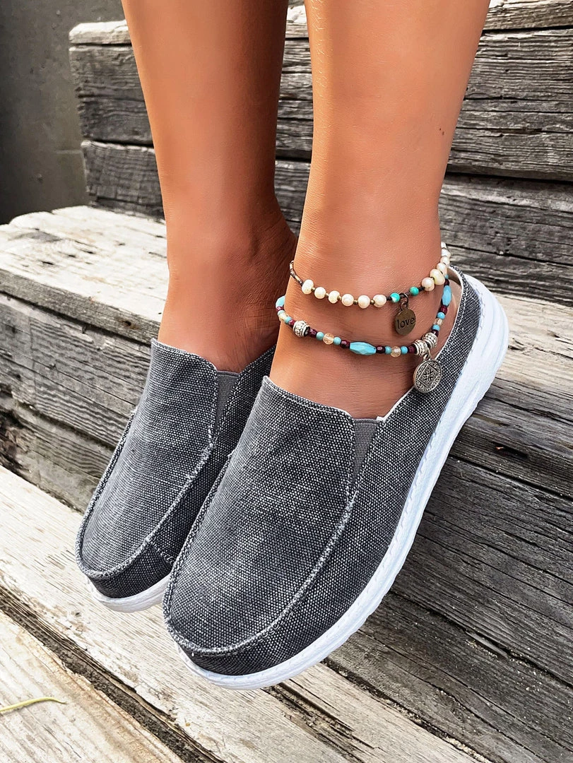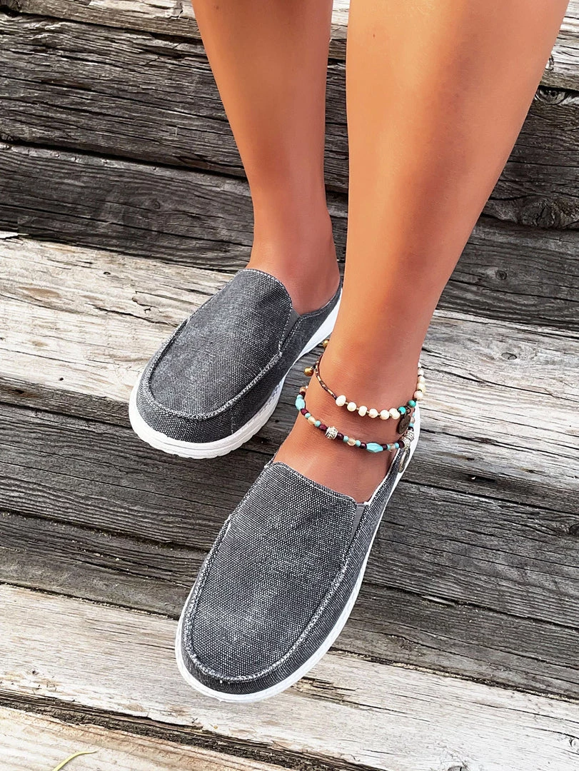With a breathable canvas upper, these mules are easy to slip on and add a cozy feel to any ensemble.