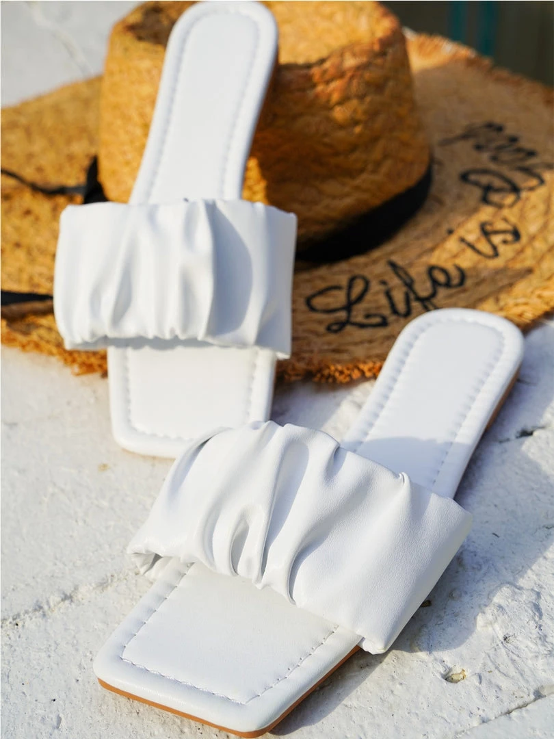 Put your fashionable foot forward in this easy-on sandal featuring a folder detail upper and flat heel for stylishly warm-weather wear.