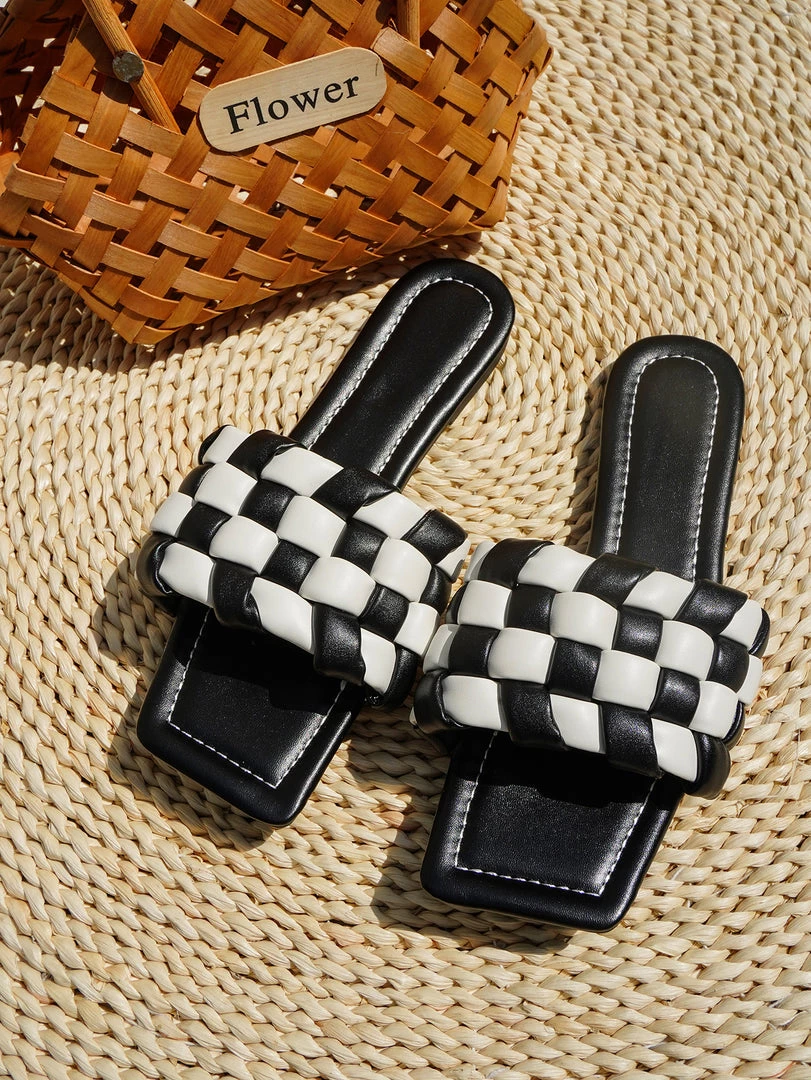 Featuring two contrast color design and a braided detail, these slides are a must-have for your chic warm-weather wardrobe.
