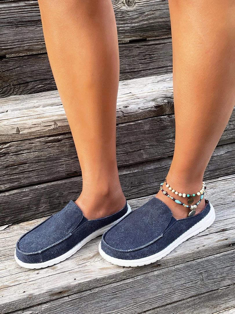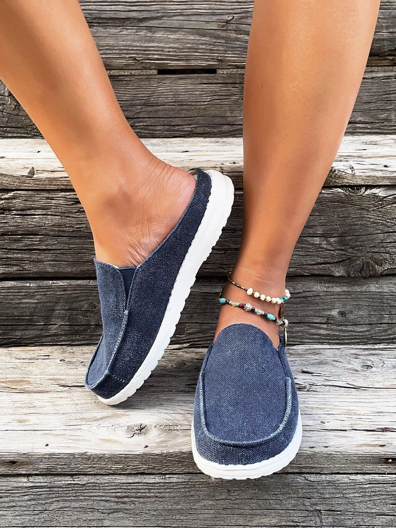With a breathable canvas upper, these mules are easy to slip on and add a cozy feel to any ensemble.