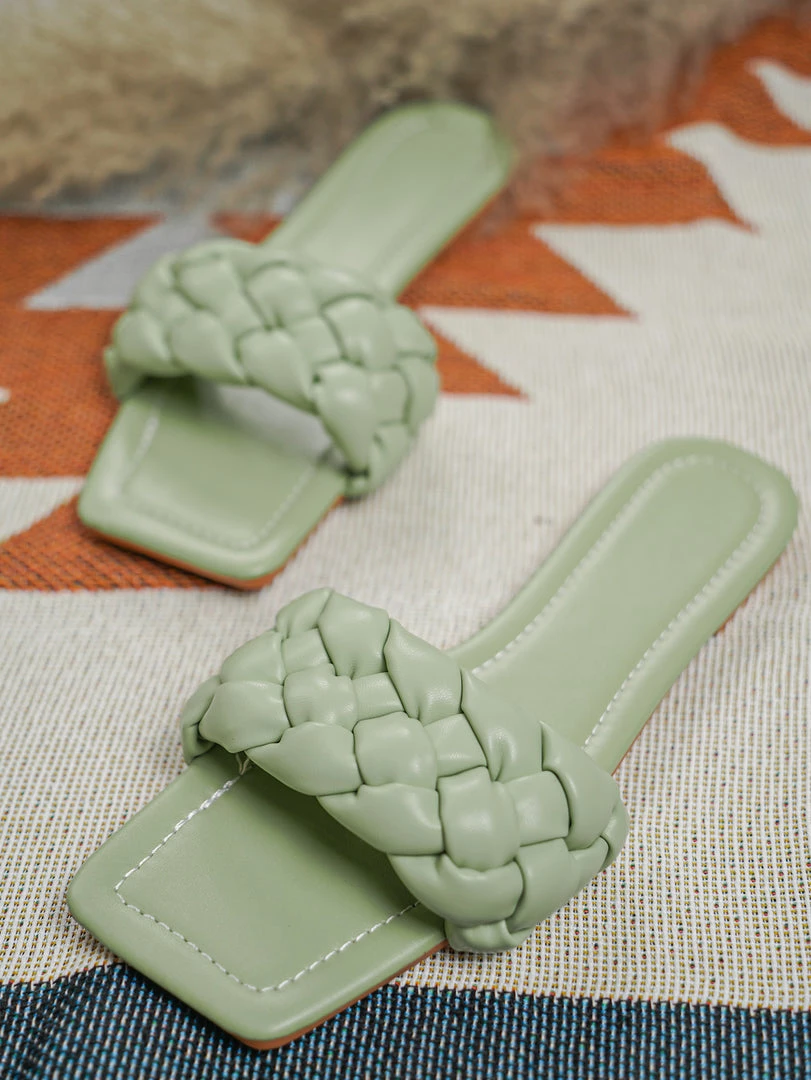 Put your fashionable foot forward in this easy-on slides featuring a woven strap and flat heel for stylishly warm-weather wear.