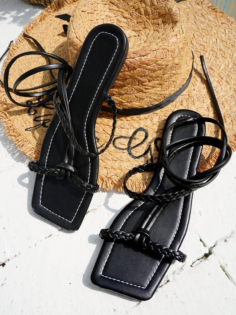 Featuring pair of tie strap design and an ankle straps detail, these gladiator slides are a must-have for your chic warm-weather wardrobe.