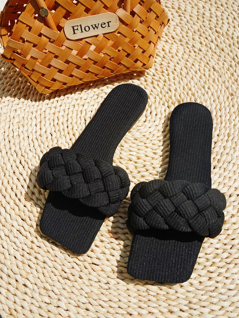 Put your fashionable foot forward in this easy-on slides featuring an on-trend braided upper and flat heel for stylishly warm-weather wear.