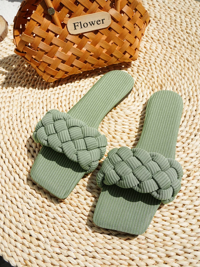 Put your fashionable foot forward in this easy-on slides featuring an on-trend braided upper and flat heel for stylishly warm-weather wear.