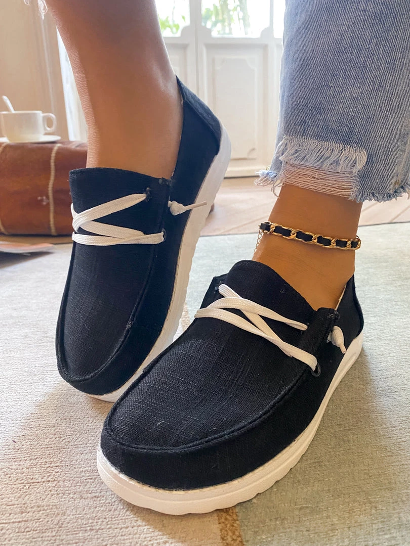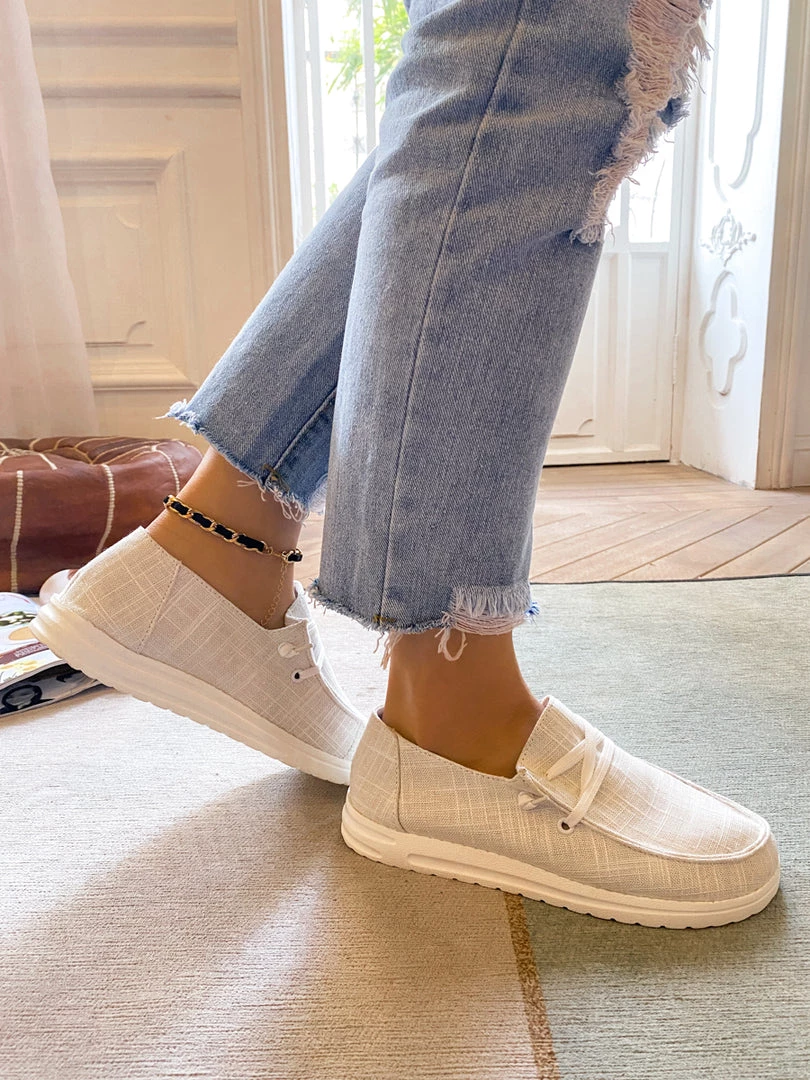 With a canvas-inspired design and slight lace-up detail, this boat shoe provides chic style to your casual looks.